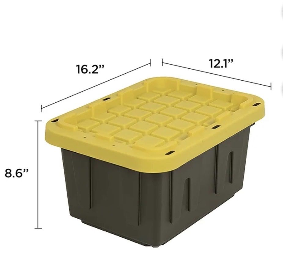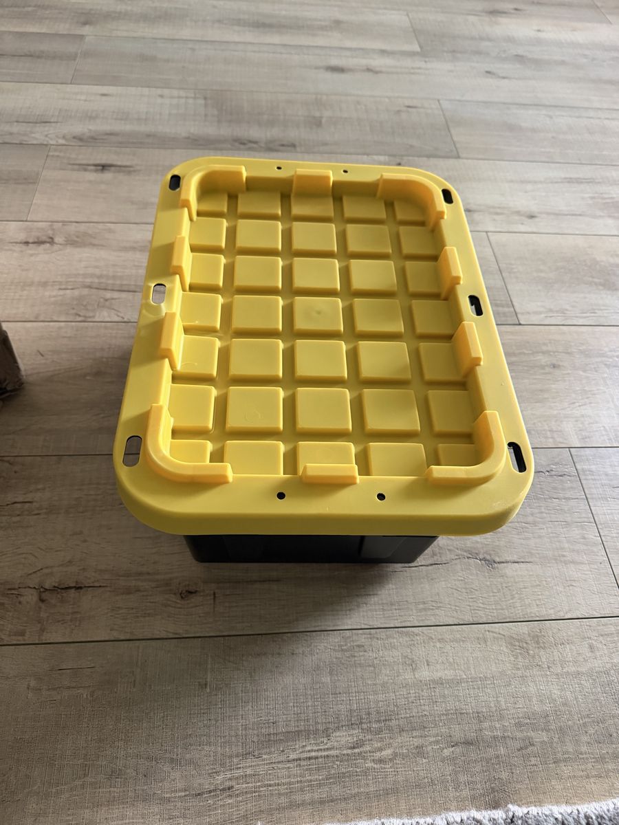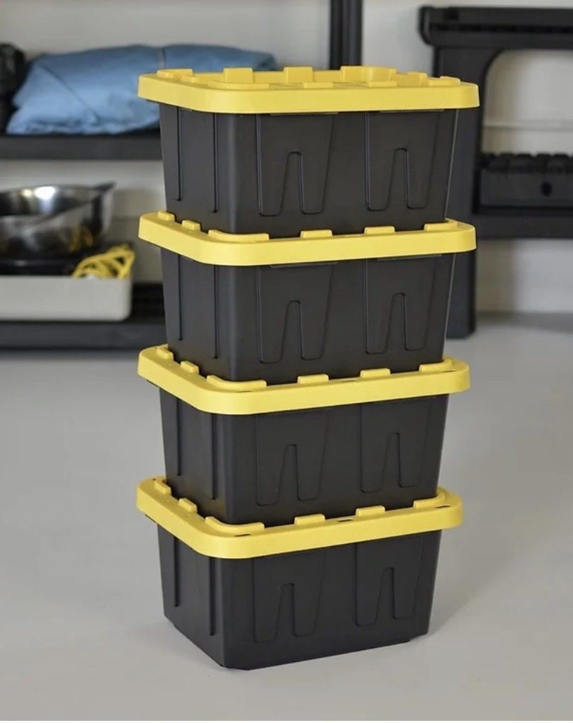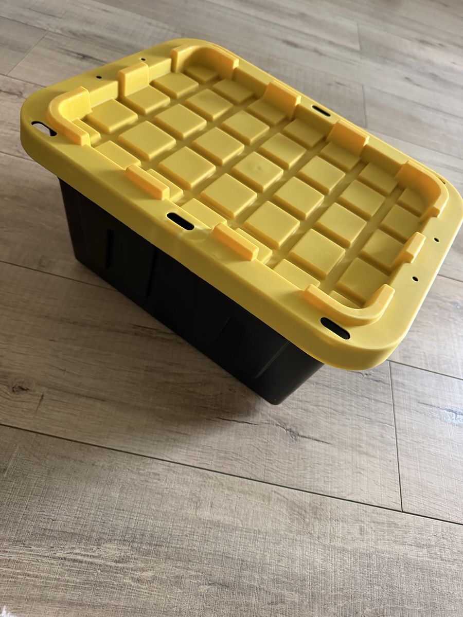 5-Gallon Heavy Duty Tough Storage Container with Snap-Tight Lid and Stackable Organization Tote, Yellow, 6 Pack