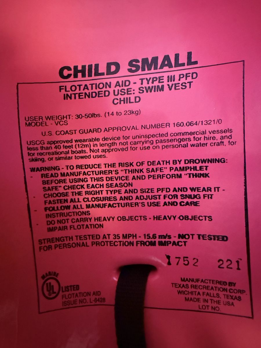 USCG Approved Child's Vinyl-Coated Foam Swim Vest