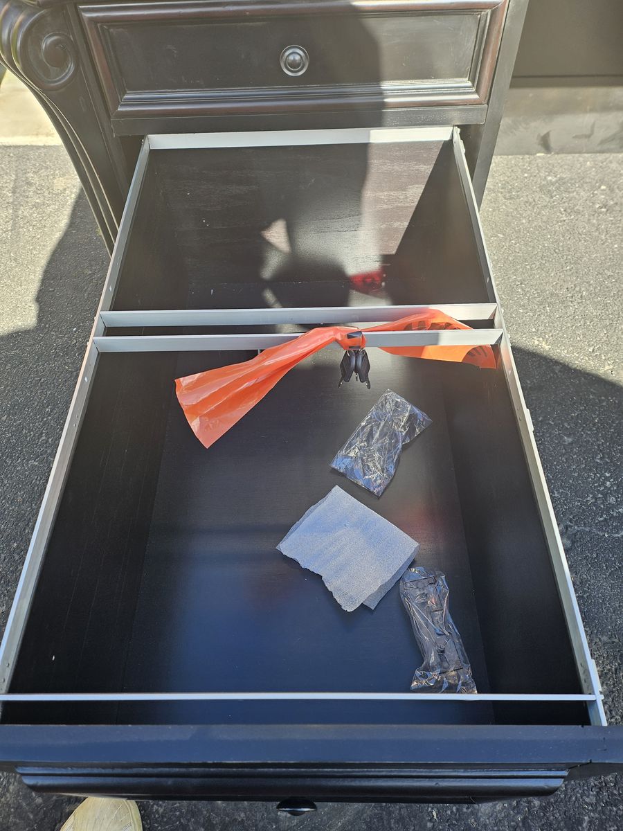 The keys to the locking drawers are included as well as additional hardware for the filing drawers.