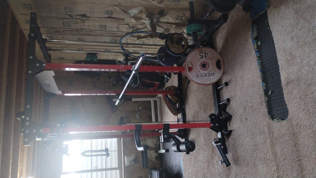 Venmomajor Lutie squat rack with adjustable pulleys. Works great. just don't use it enough. comes with dip attachments and a leg hold down attachment for lat pull downs. has built in land mine and low row footpad . also has pegs for using restance bands. weights not included. Call or text Matt 8017876182