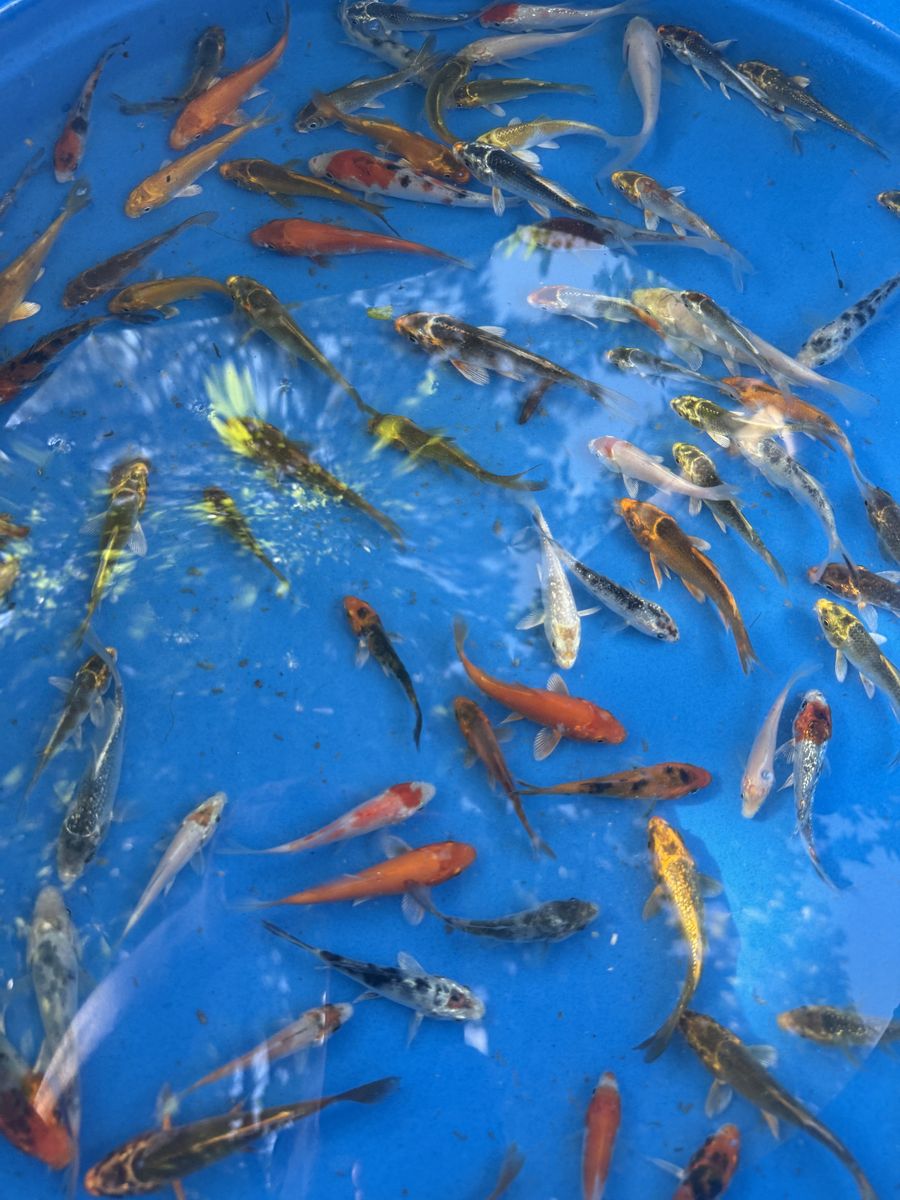 Come visit our product line featuring beautiful, healthy Japanese Koi fish in our two large, dedicated fish ponds. We have a wide variety of koi in different sizes (about 4''-10'') and vibrant colors for sale!