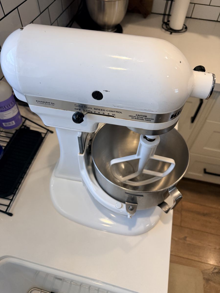 VenmoSelling my Vintage KitchenAid K5SS stand mixer from the 1980s. My mother got this as a wedding gift in 1984, which was before Hobart sold Kitchen-aid to Whirlpool. The unit still runs great and has all those long-lasting, bulletproof internals that make these last forever.