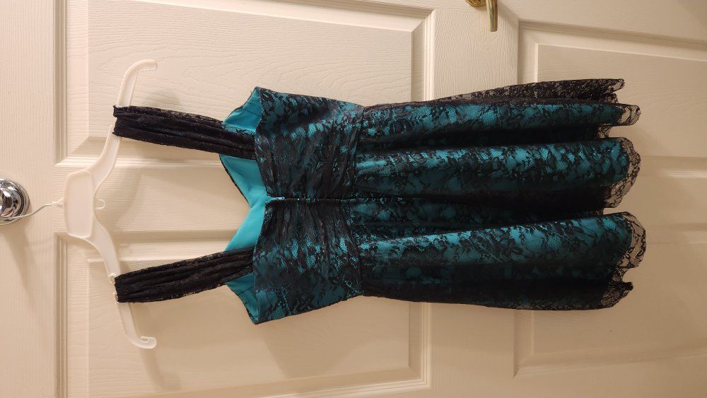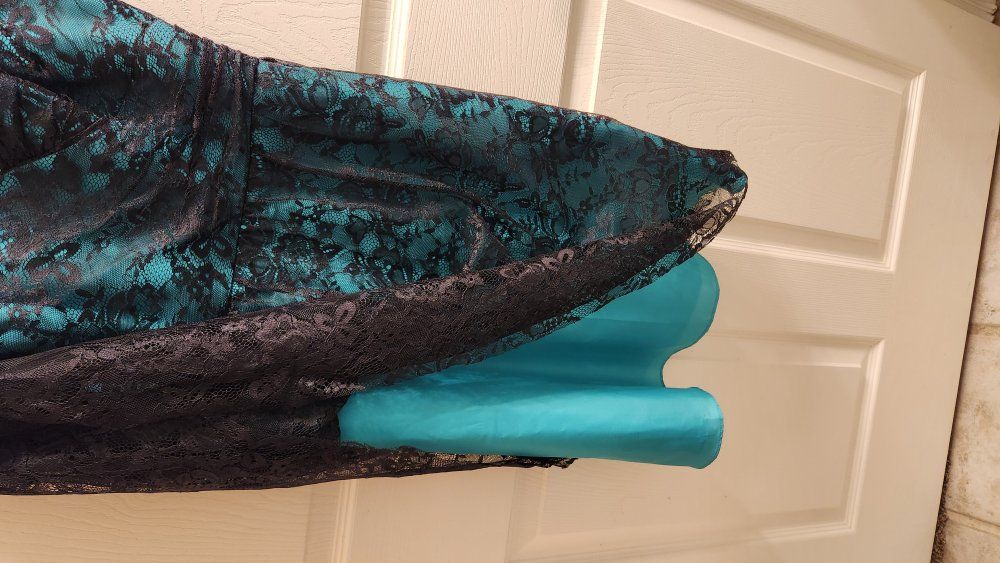 Greenish-blue with black lace. Cash only. Pickup in Draper.