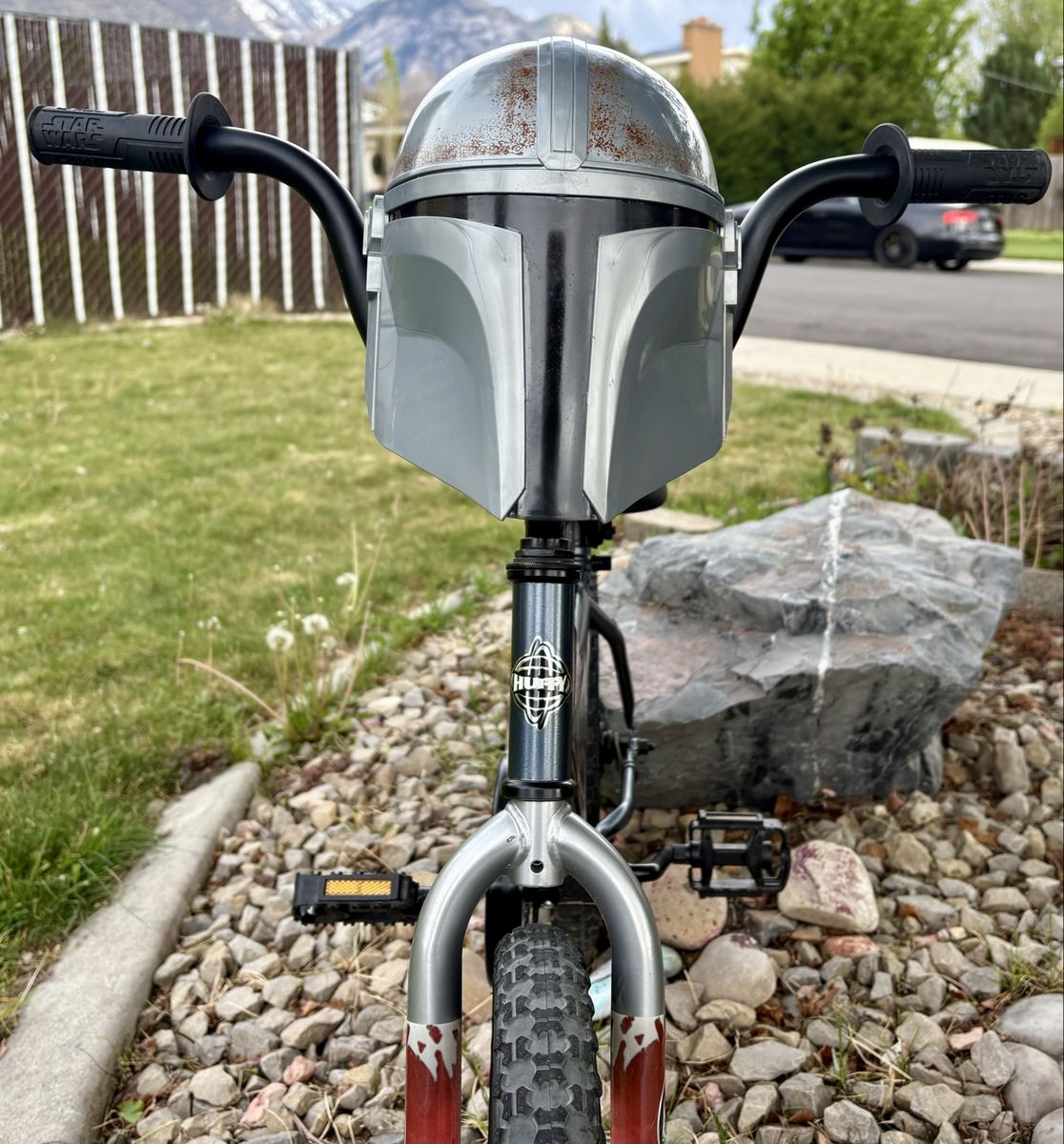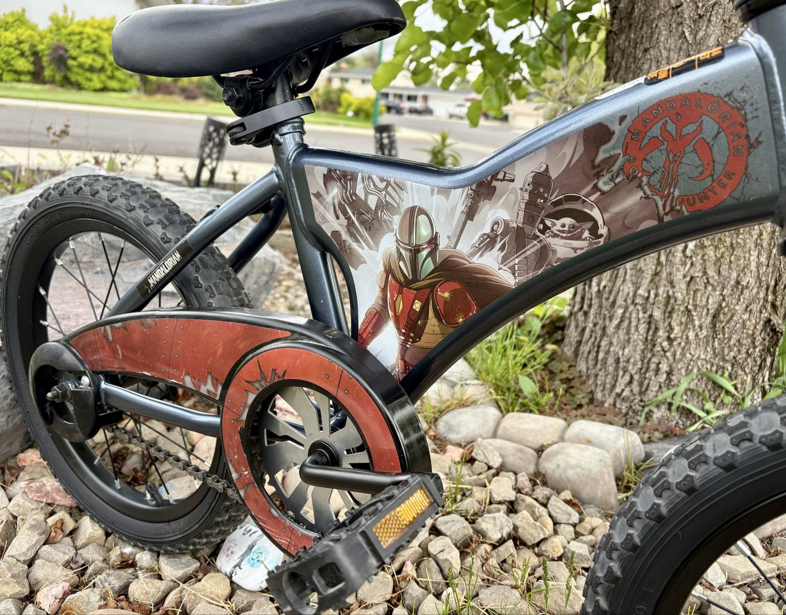 16” Star Wars Mandalorian bike. The bike is in excellent condition and ready to ride. The bike has great tires with tons of traction. I have also added $20 worth of self sealing slime tubes to it so that you don’t have to worry about getting flat tires. Has a cool bounty hunter on the handlebars. Step backwards to stop. Located in Orem. Cash only please.