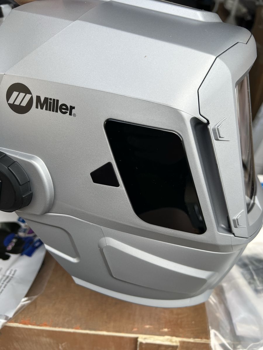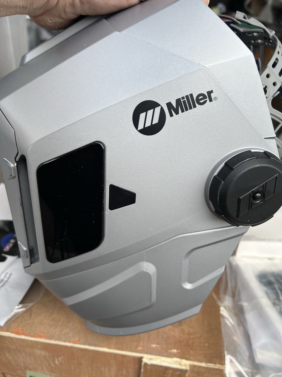 Venmo(New) Miller T94i series auto-darkening welding helmet featuring an integrated grind shield. It is equipped with ClearLight lens technology for high-definition optics. The helmet includes a four-point flexible headgear designed to minimize pressure points. It offers a large viewing area and a matte silver finish that reflects heat. It features four arc sensors and four operating modes: weld, cut, grind, and X-mode. $525 OBO.