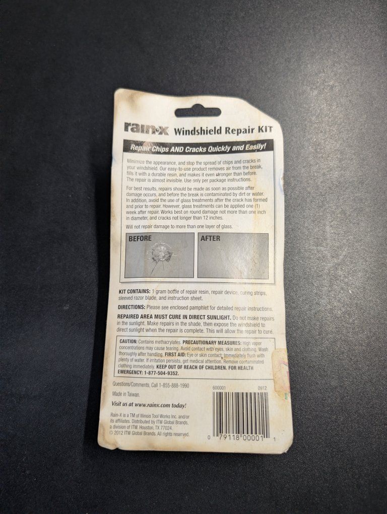 ZelleBrand: Rain-X Model/Type: Windshield Repair Kit (RX-WINDSHIELD-KIT) Material/Color: Yellow/Blue Packaging