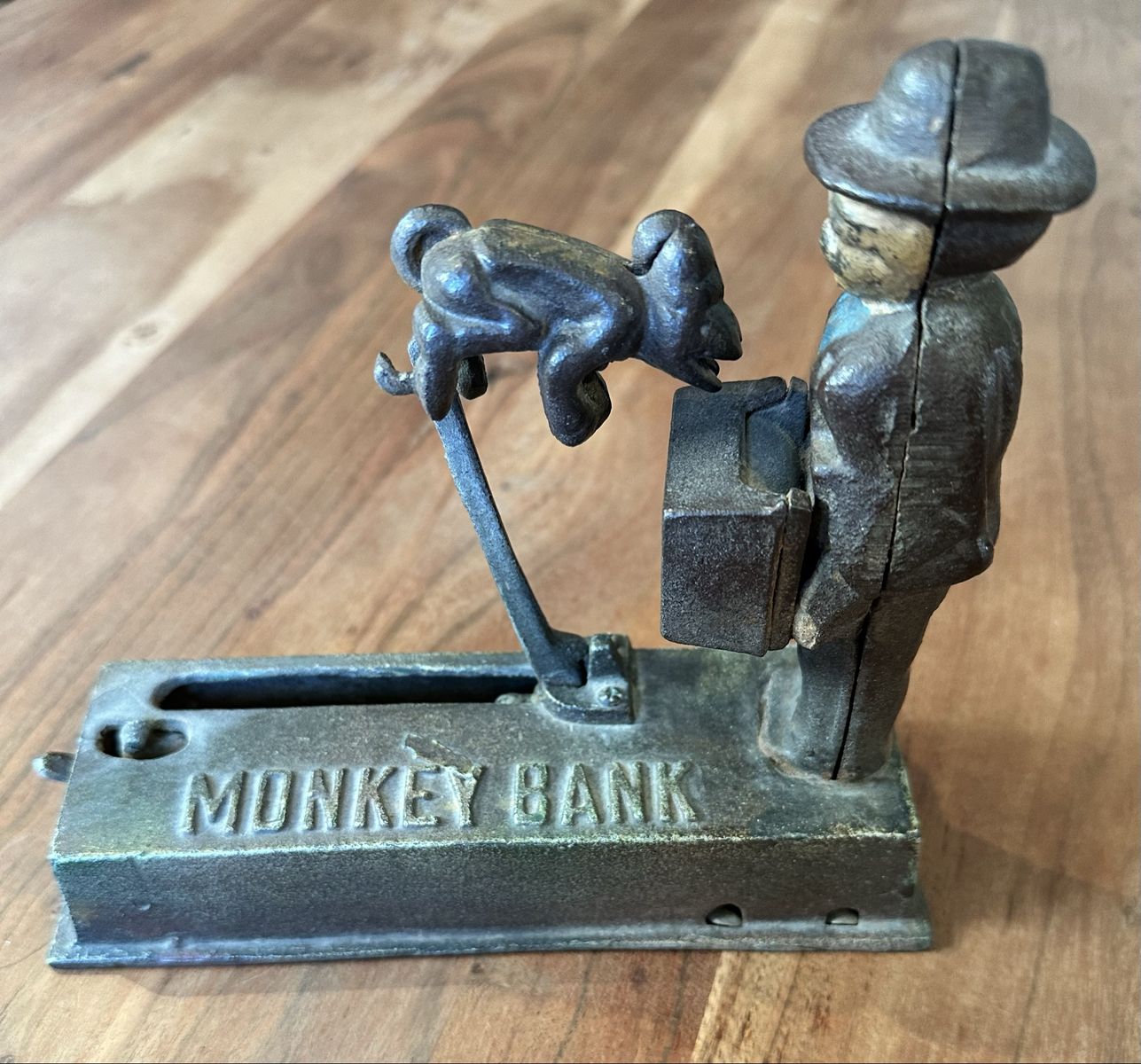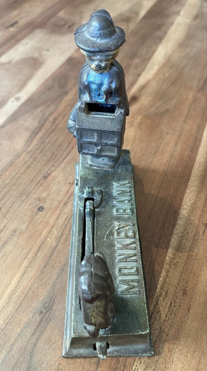 VenmoVintage cast iron “Monkey Bank” mechanical coin bank. Classic design with working lever mechanism — fun collectible or display piece.