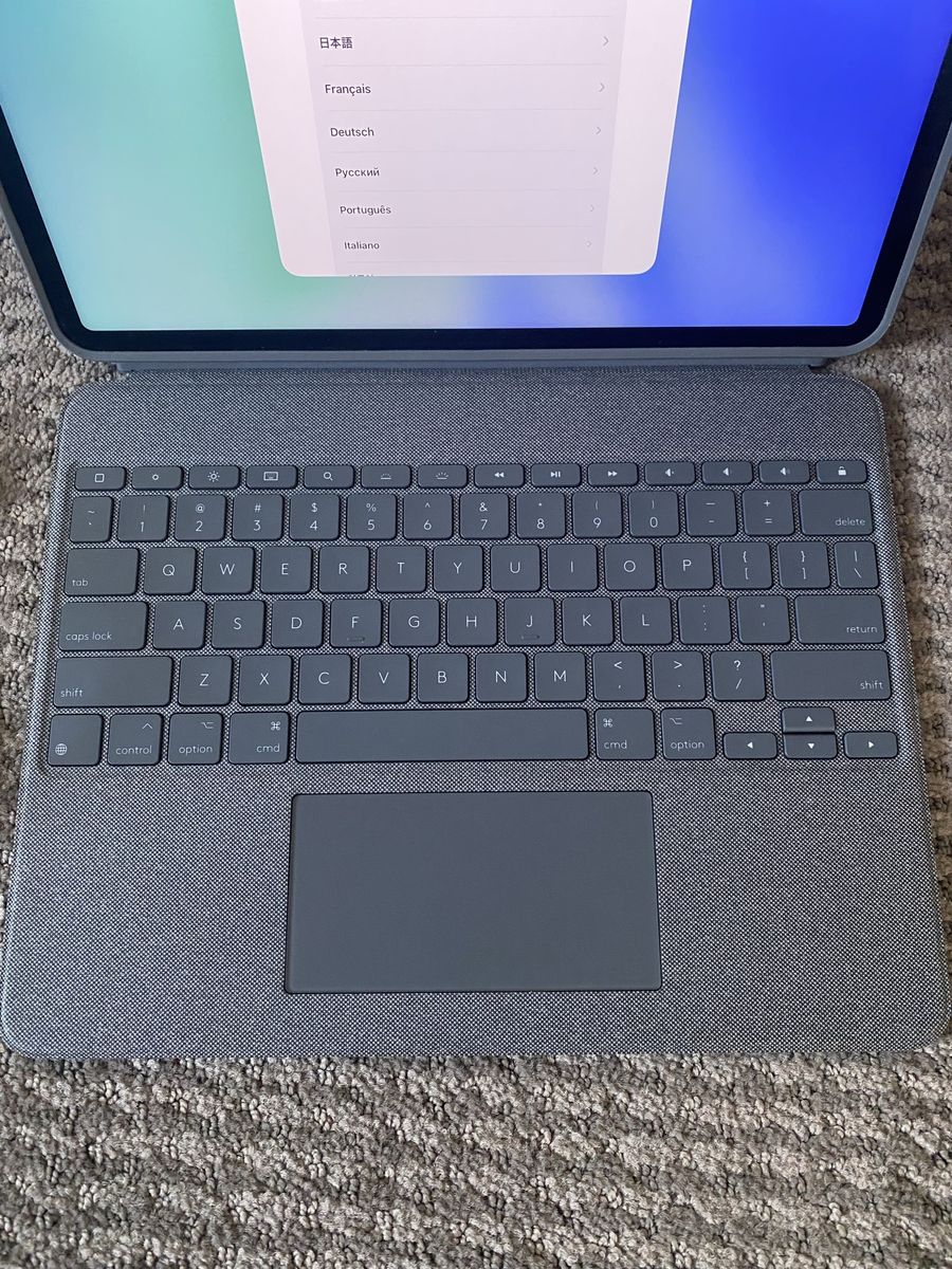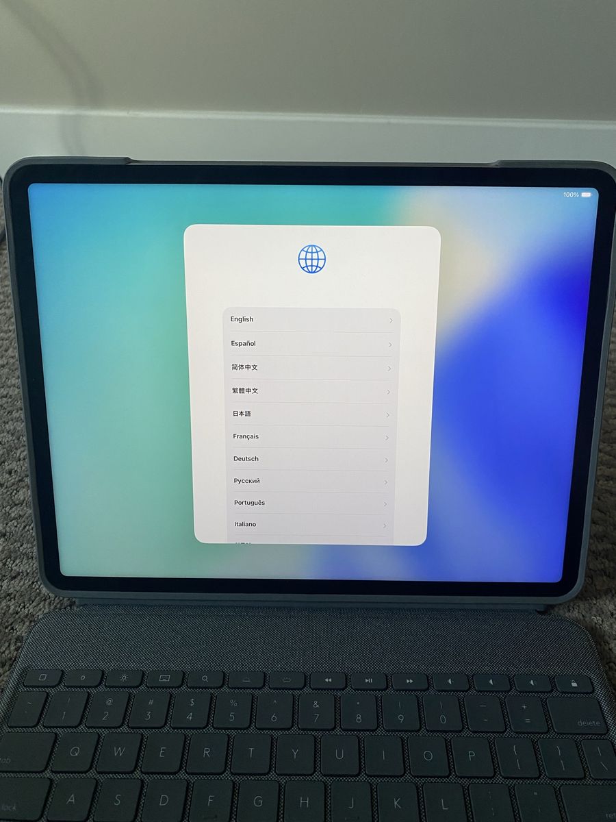 iPad Pro 12.9” (6th gen, M2, 128GB) with Logitech keyboard case. Great condition, everything works perfectly, no problems at all.