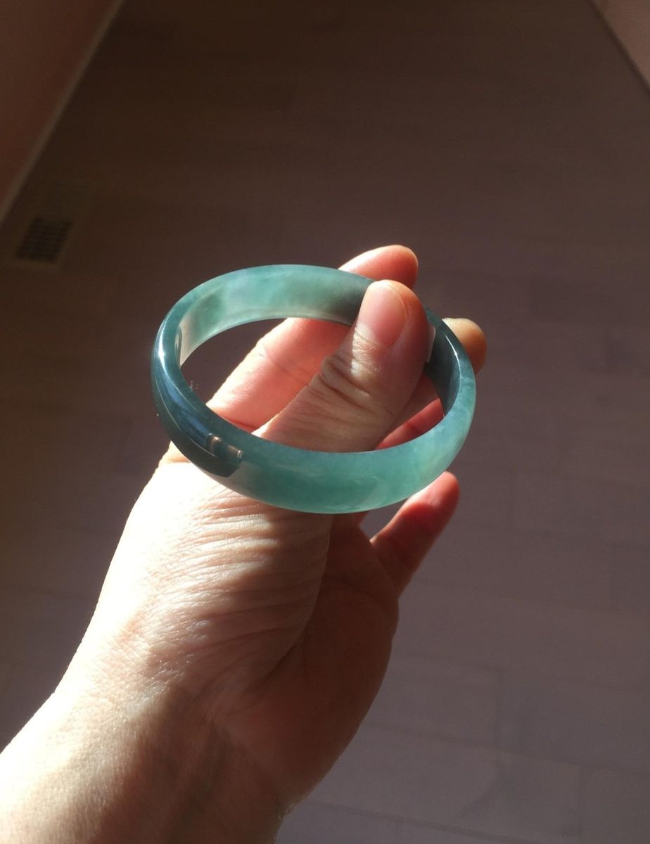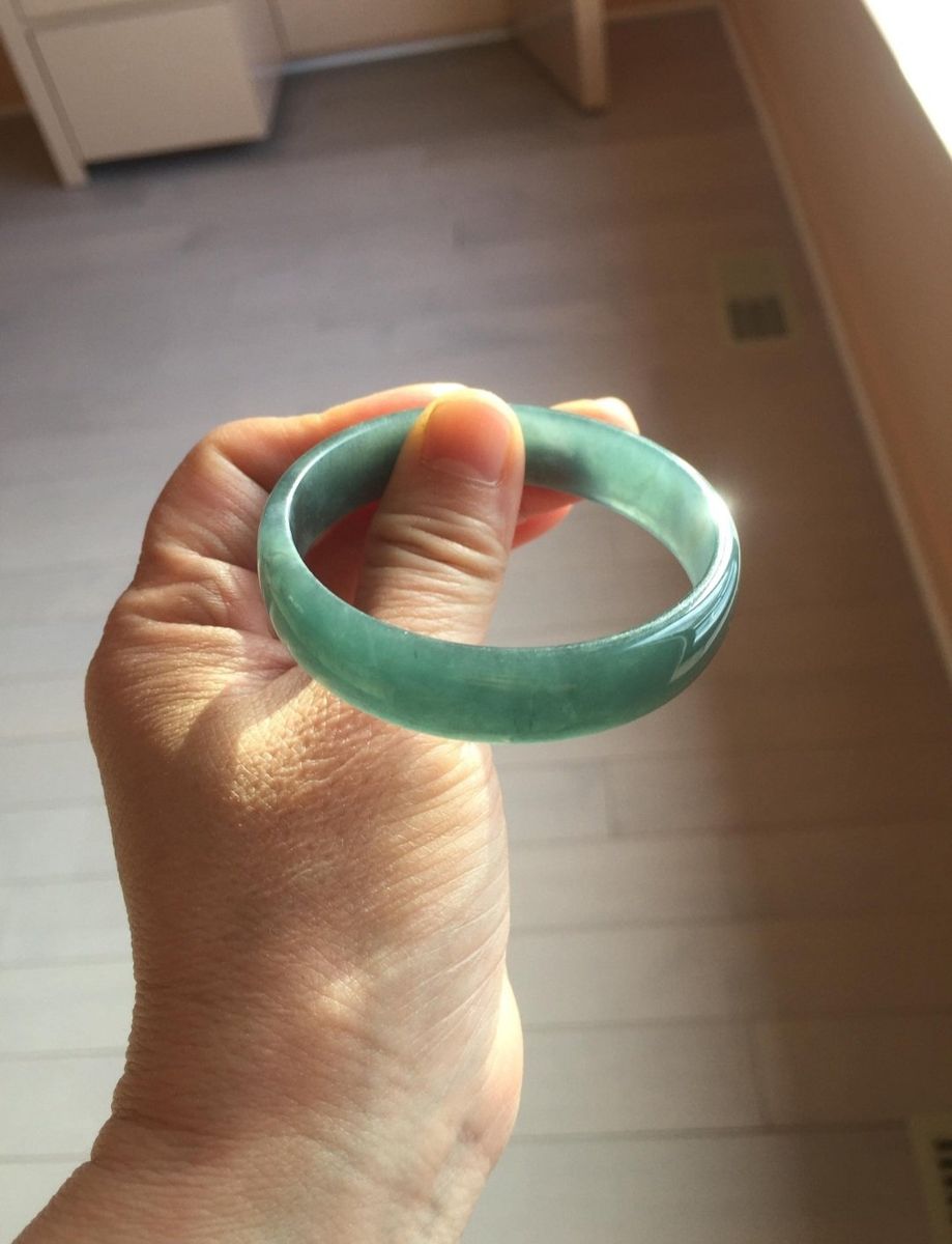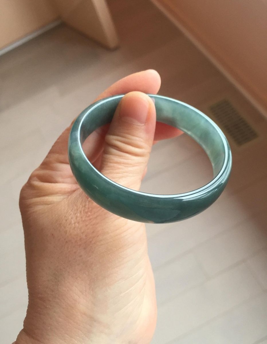 CashApp52.8mm Certified Type A 100% Natural Icy Watery Deep Sea Green/Blue/Gray Guatemalan Jadeite Bangle