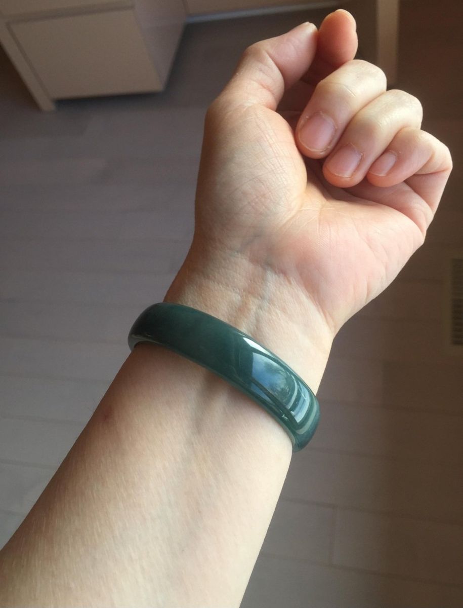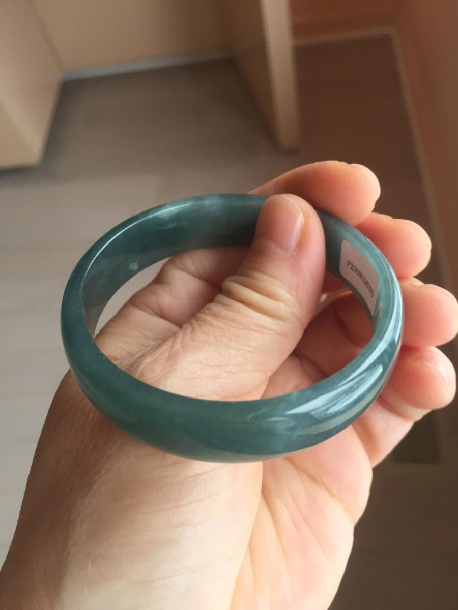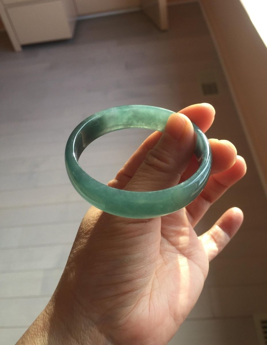 CashApp52.8mm Certified Type A 100% Natural Icy Watery Deep Sea Green/Blue/Gray Guatemalan Jadeite Bangle