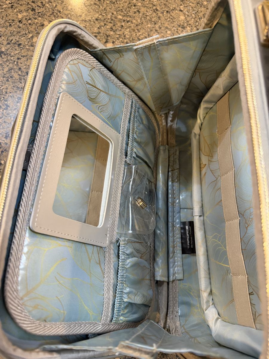 Adjustable, Handle, Mirror, Pockets, Straps, Zipper