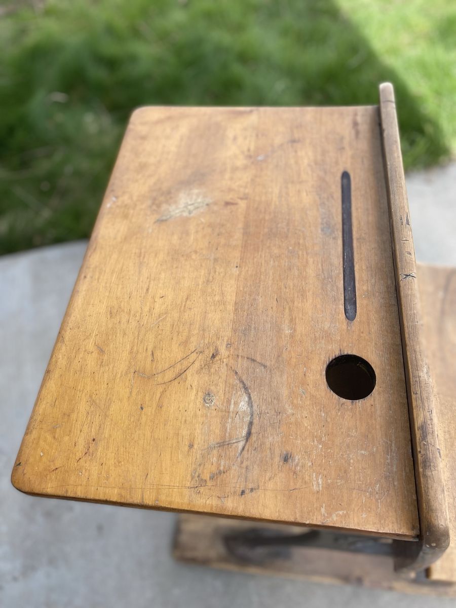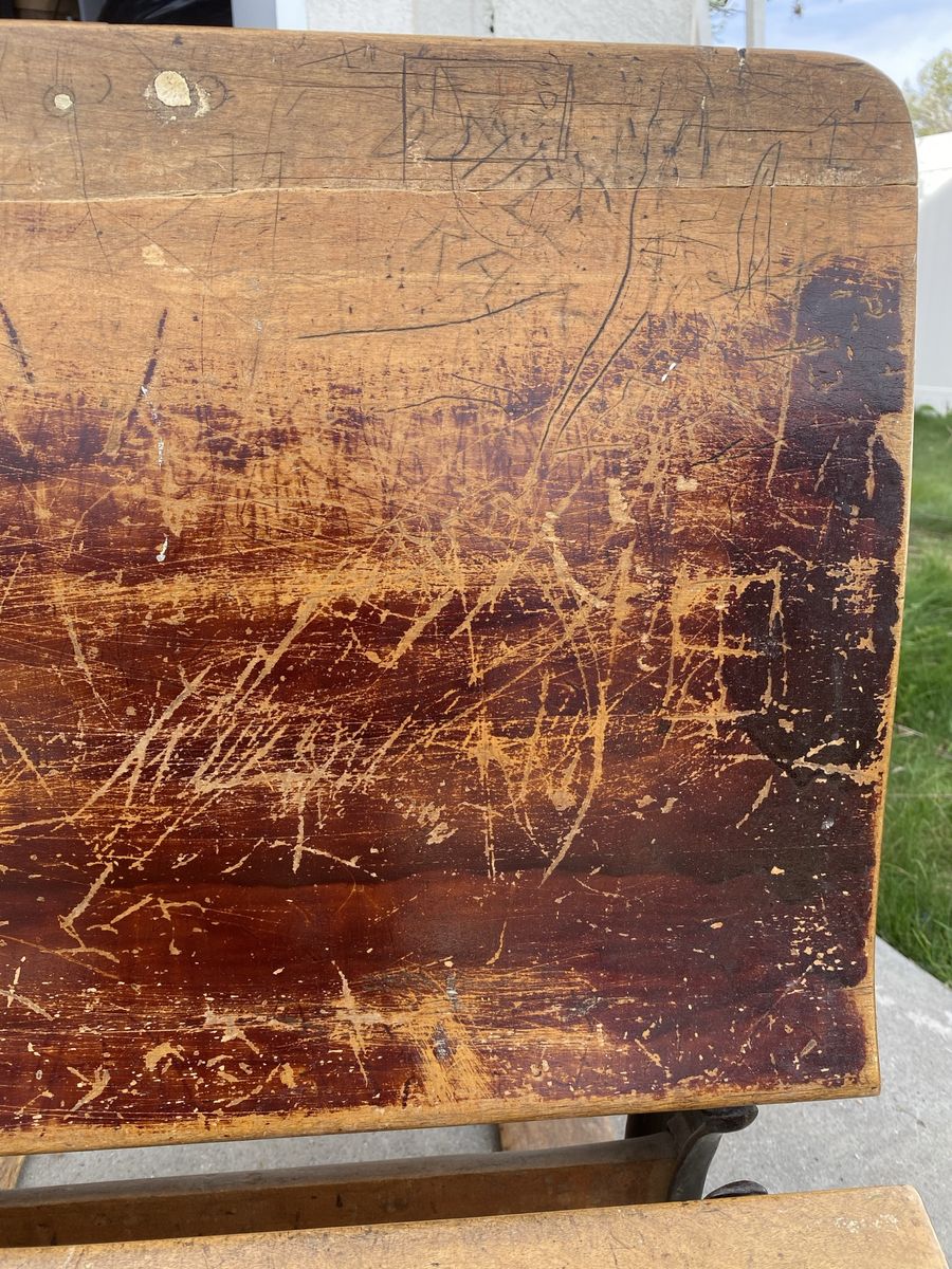 Vintage desk came out of an old school in southern Utah. Please text 801-928-9049