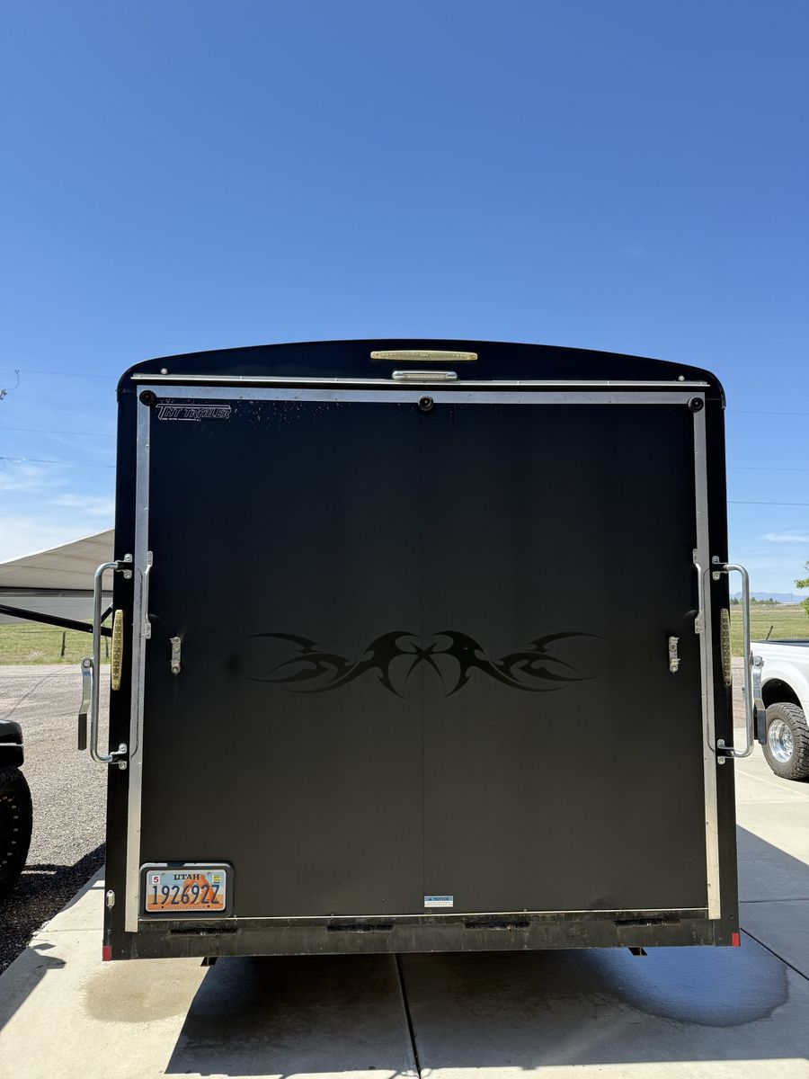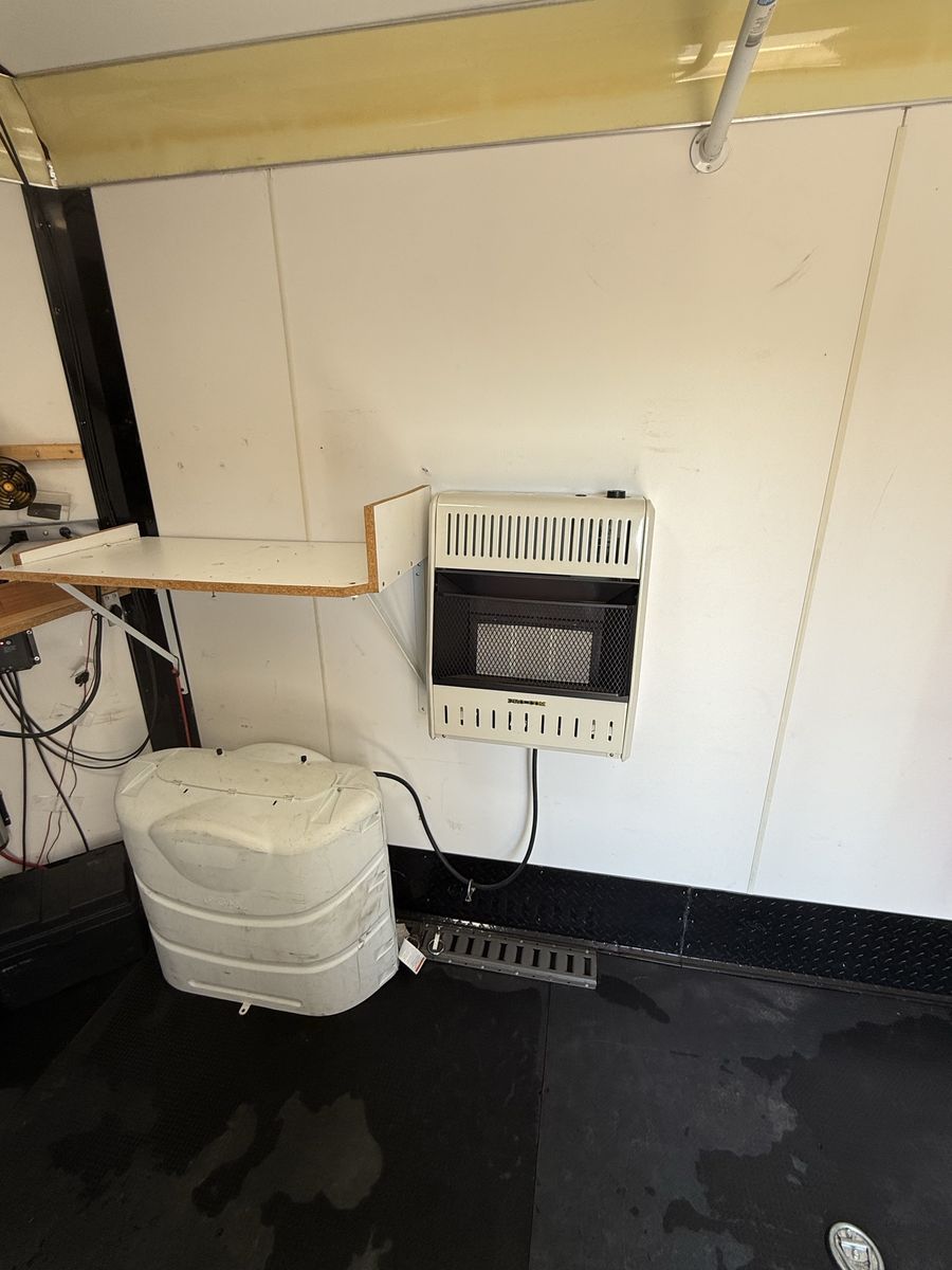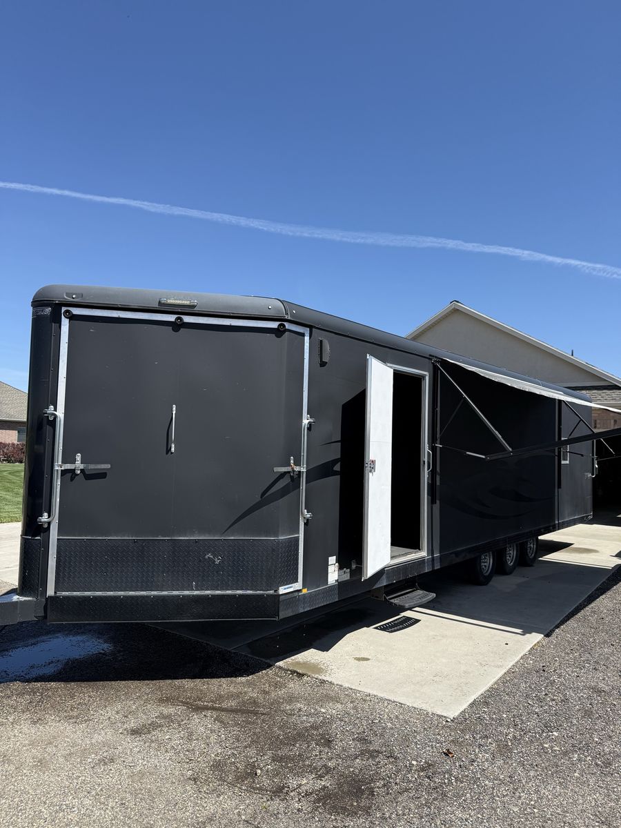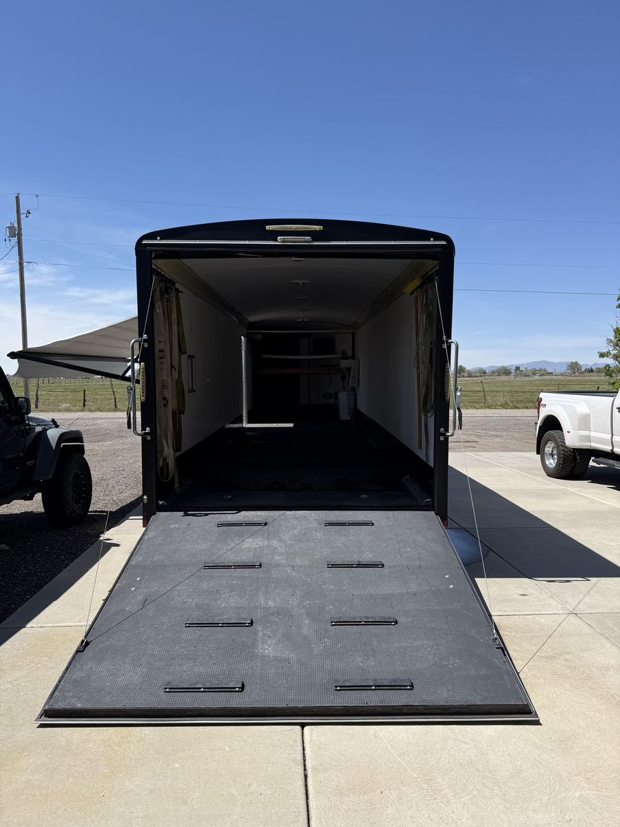 This versatile 30’ box (plus 4’ V-nose) is perfectly set up for hauling and basecamp use. It comfortably fits two 4-seater side-by-sides with extra room for gear. Key Specs: Axles: Triple 3,500 lb axles. Dimensions: 34’ total length (30’ box + 4’ V); 82” rear door opening height. Tires: Good condition, 50%+ tread remaining. Interior & Power: Climate: Wall-mounted propane heater with two 7-gallon tanks. Power: 100W solar panel system. Entertainment: Wall-mounted TV included. Ready for the dunes or the trail. Clean and well-maintained.
