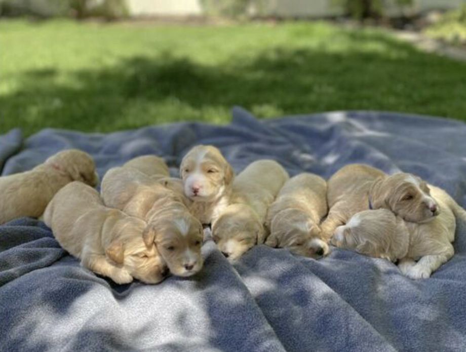 We recommend Progesterone testing for your female prior to breeding. Pregnancy is guaranteed with a progesterone test. We offer natural ties as well as AI. TCI’s can be scheduled at K-9 Fertility or Utah Reproduction Canine Fertility Center. Call us promptly at the start of your girls heat cycle & we will schedule your breeding 435-655-5750. Boomer would love to meet your beautiful girl & make darling little Doodles.