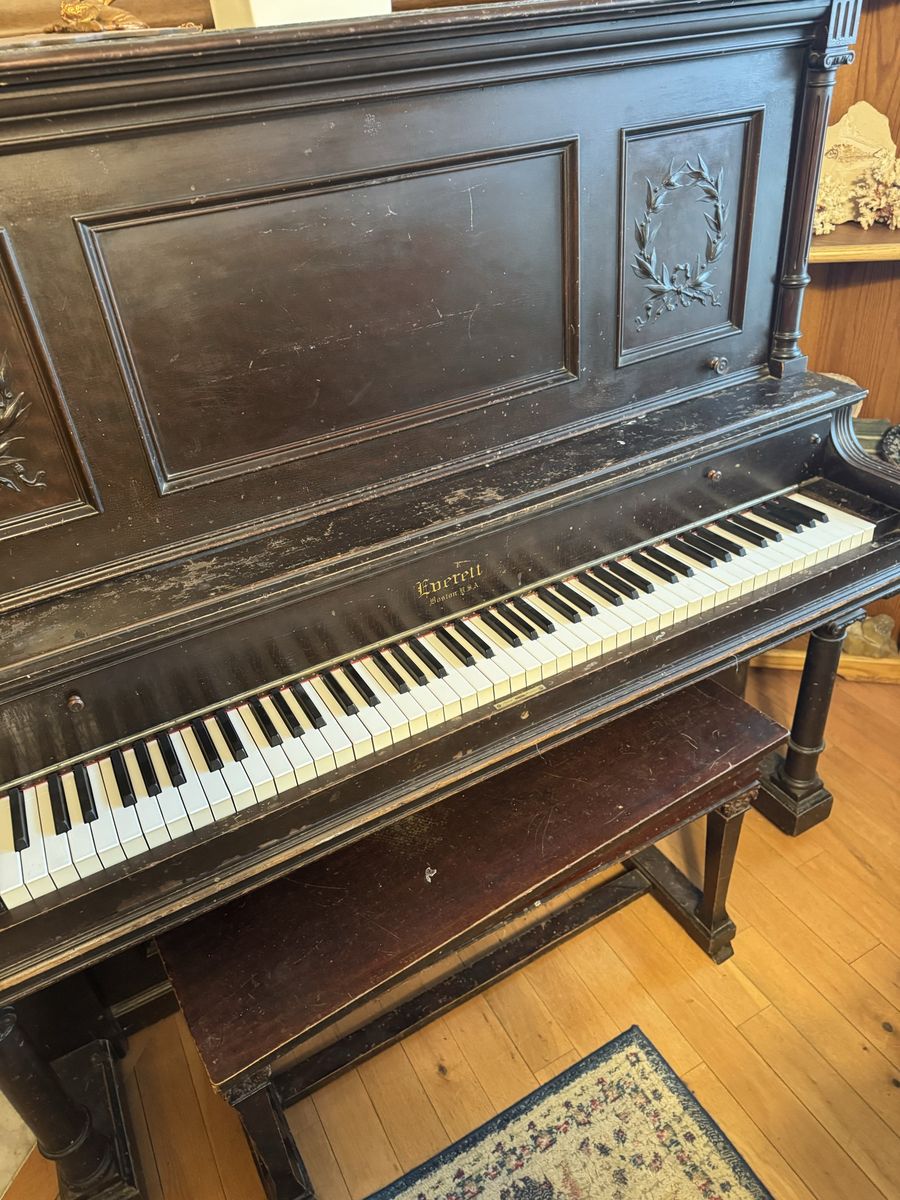 Old but excellent quality. All keys work. Sounds good. Very heavy. You will need 2-4 strong men to move.