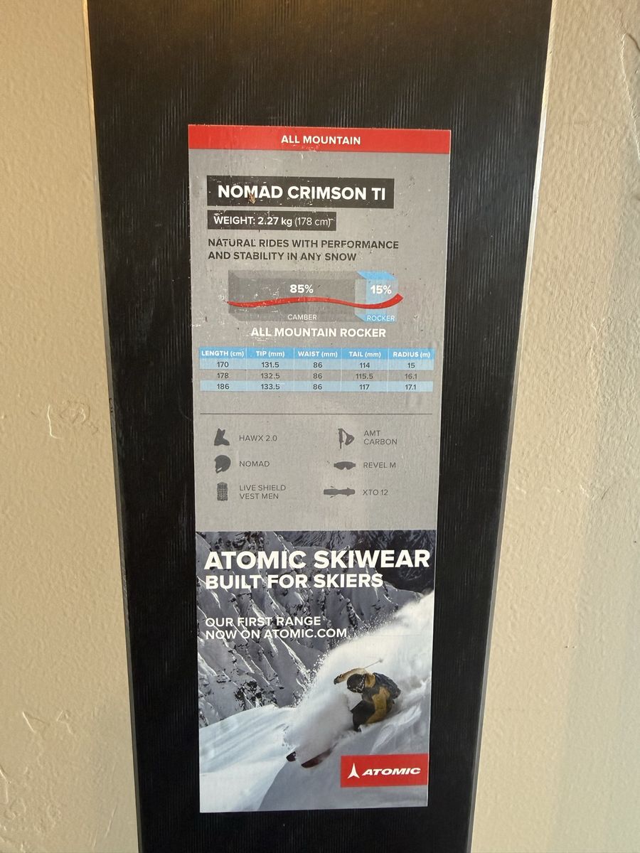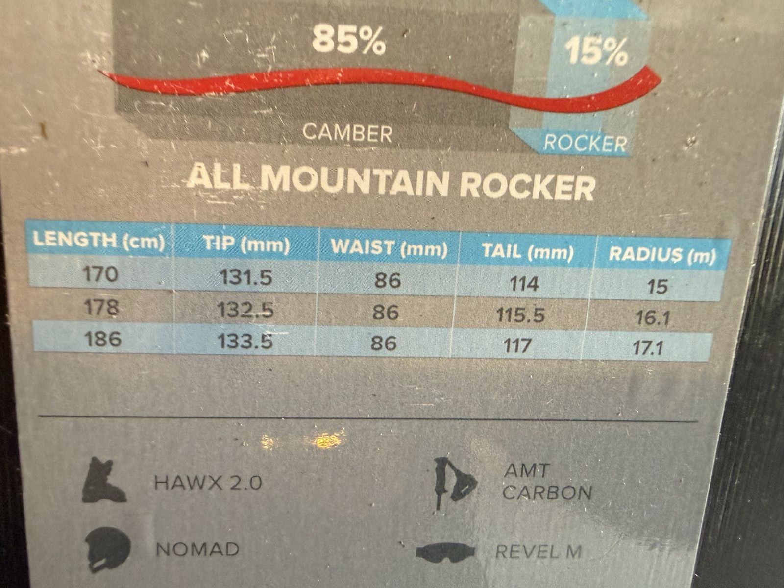 PayPalAtomic Crimson Nomadic T1. 170 All Mountain Rocker. Brand new. Never used. Specs in photos.