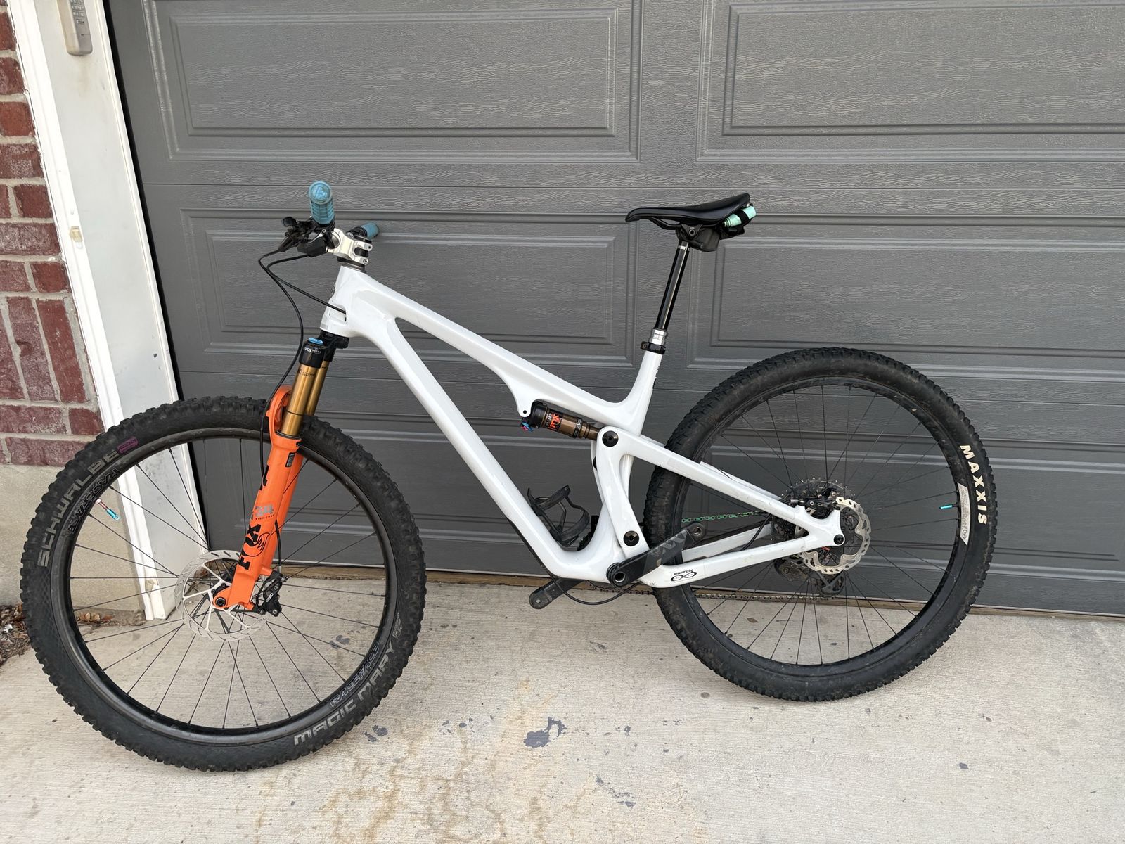 Size large Fox 34 sl Kashima Fox float dps Kashima Rock shocks wireless dropperpost Xo1 sram wireless derailer and pod Sram carbon cranks Chris King headset Industry nine stem sram G2 ultimate brakes enve carbon bars Race face carbon rim Ibis, aluminum rear rim Schwabe magic Mary front tire Maxes recon rear tire