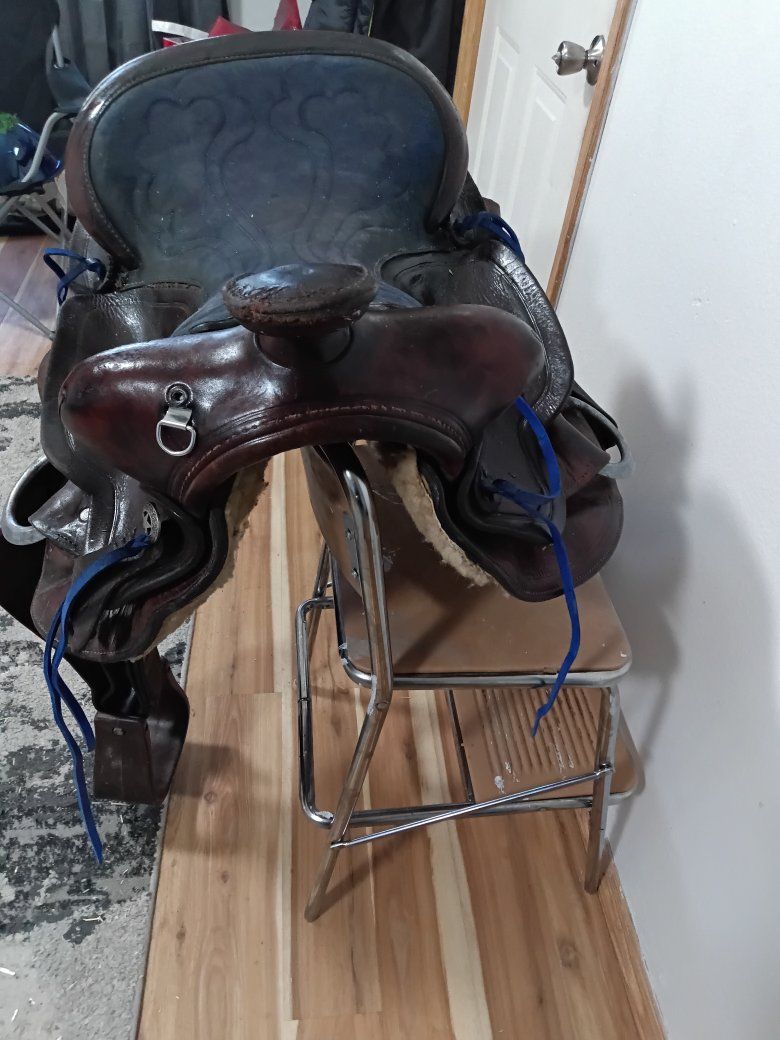 15 in simco saddle girth paracord headstall, reins and a lightweight headstall as well.