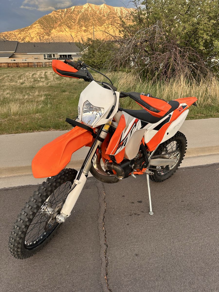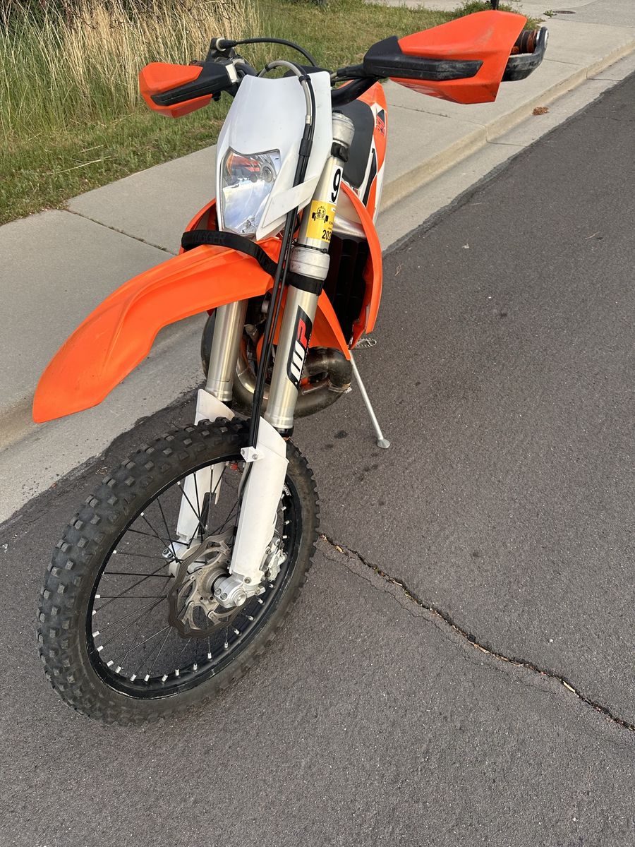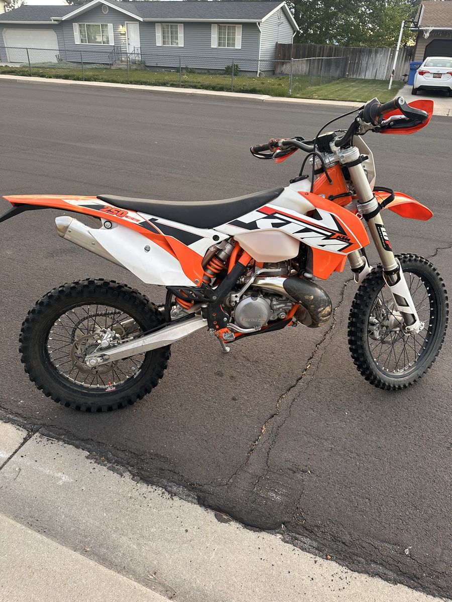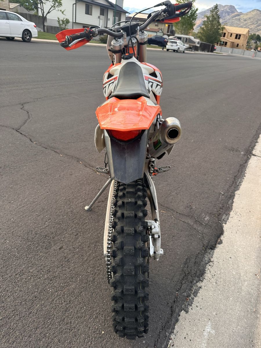 This is a 2015 ktm 250 xc-w. This bike rips and is super fun on the trails. It has 134 hours which is low for the year, and a tubliss tire setup.