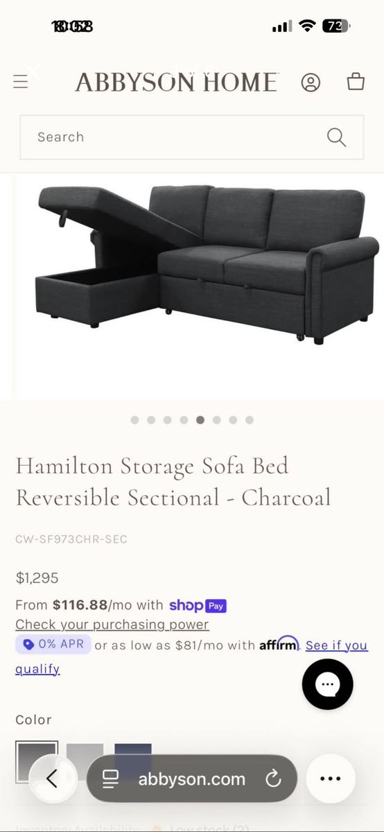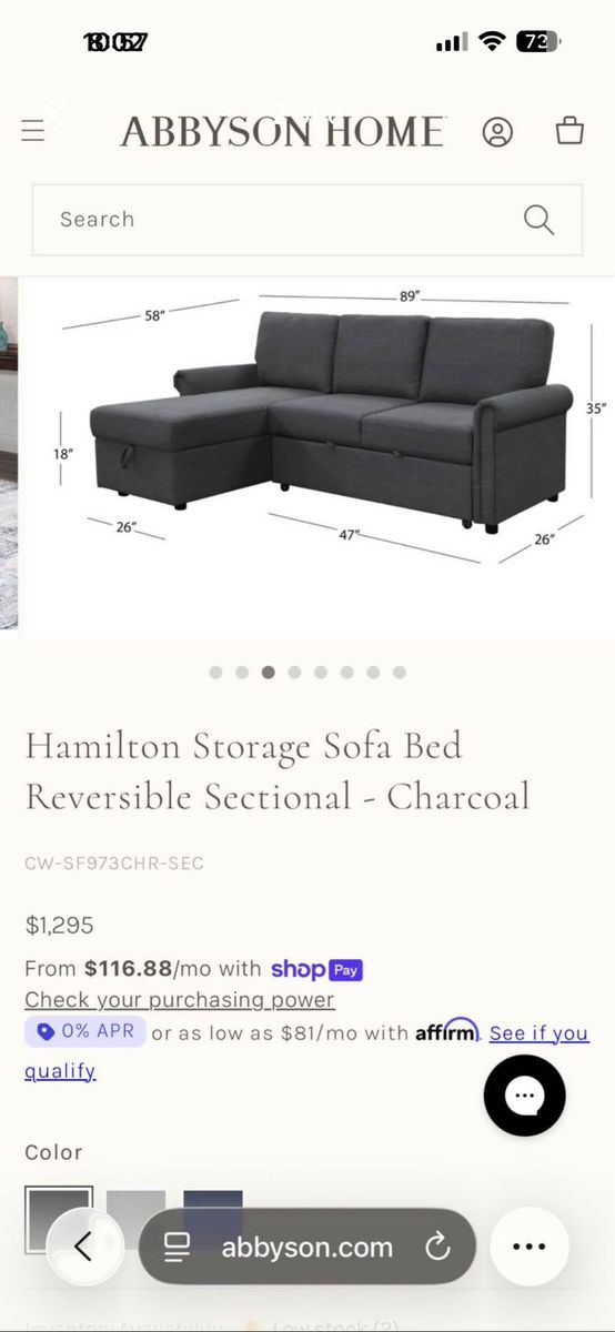 VenmoToday’s special new Hamilton storage sofa bed reversible sectional by ABBYSON Home. Still in the original boxes and packaging. Sells new for $1295. Will deliver for an additional fee.