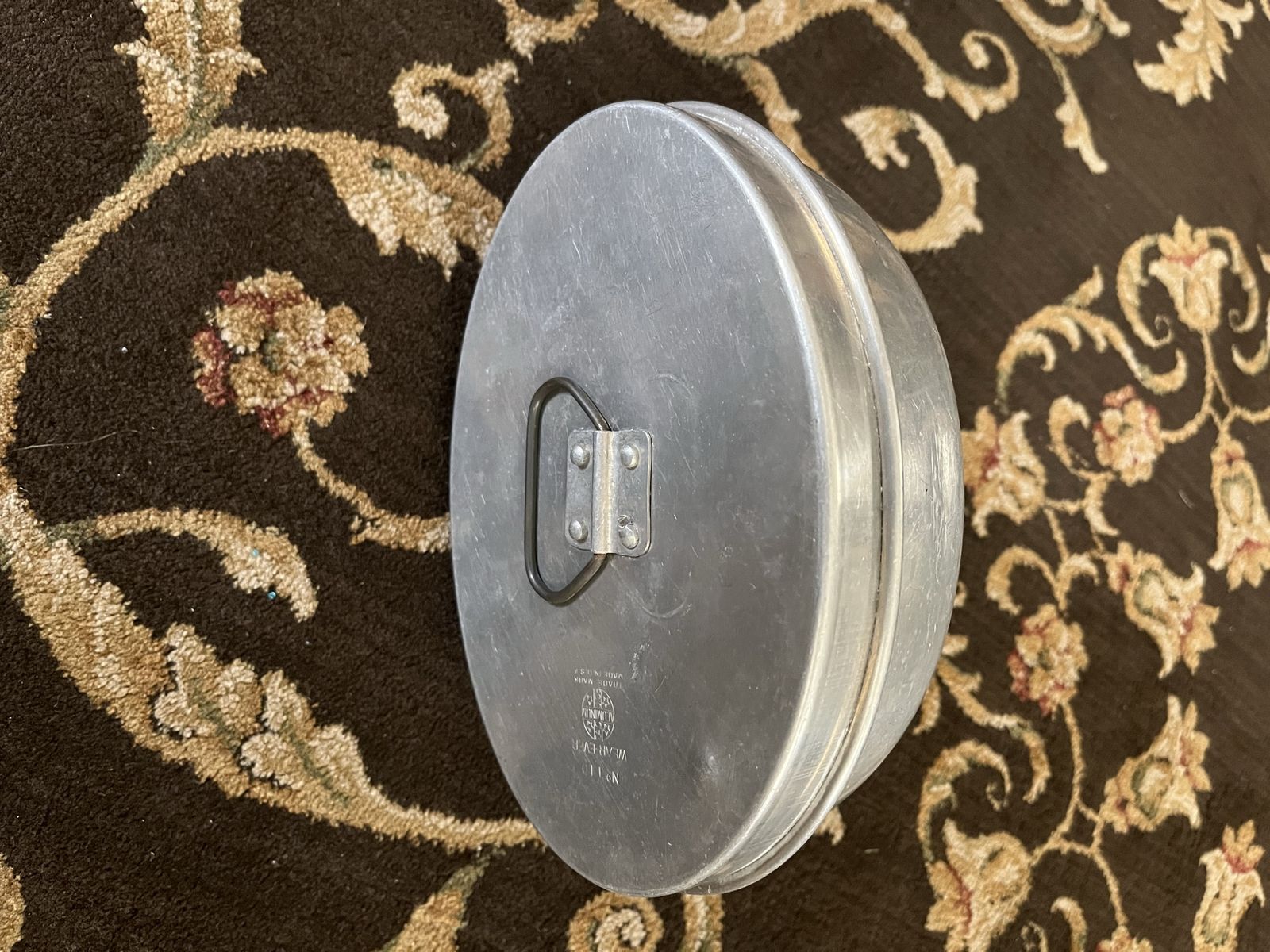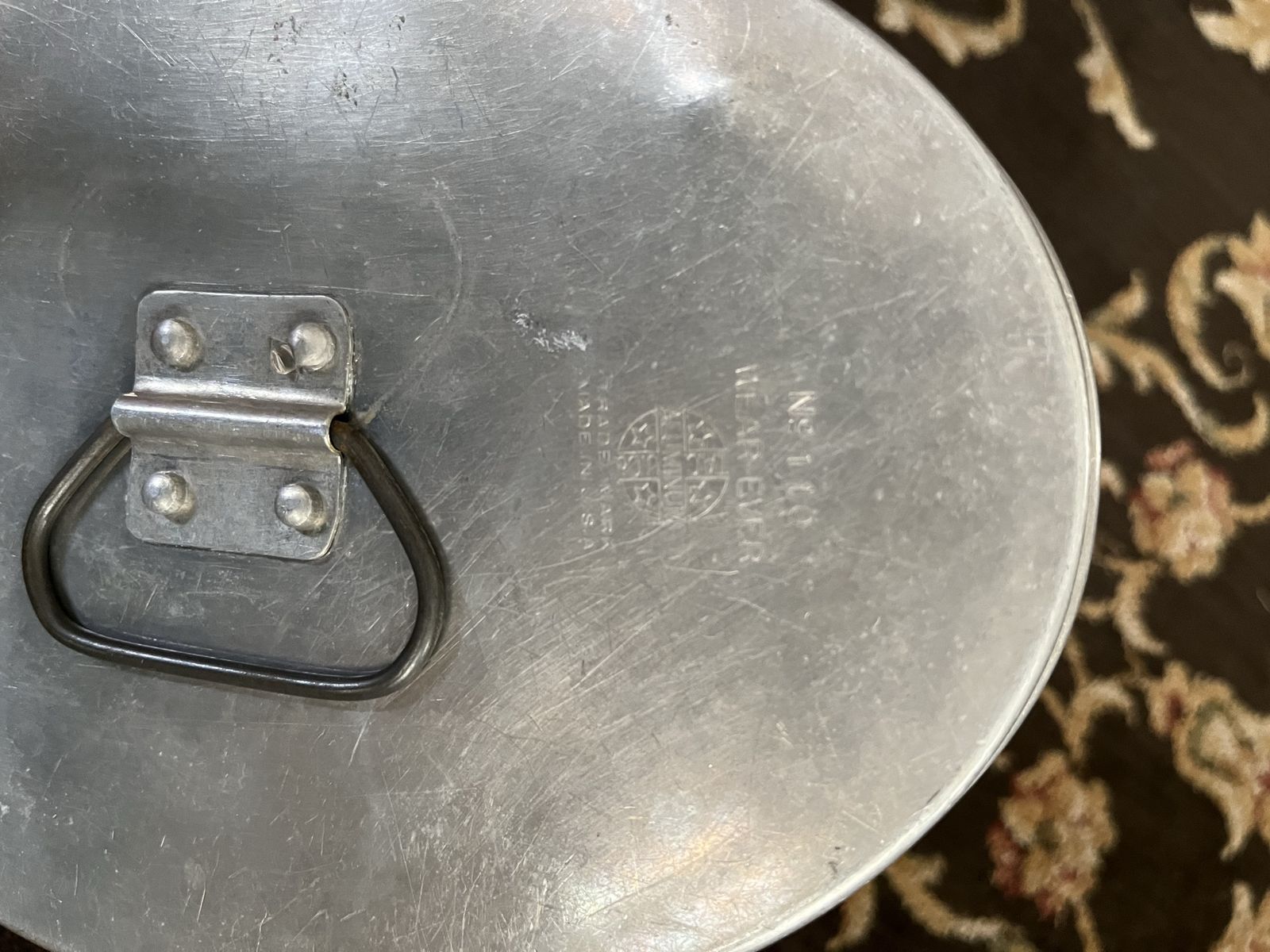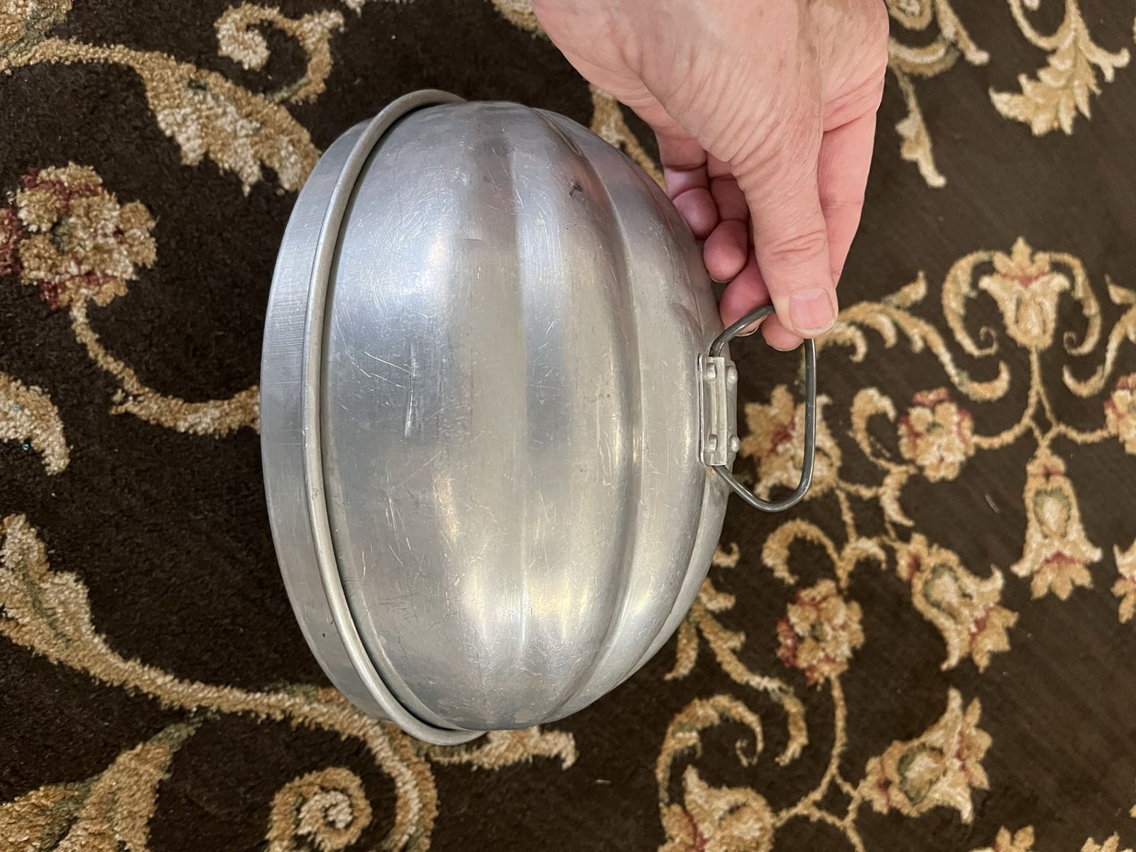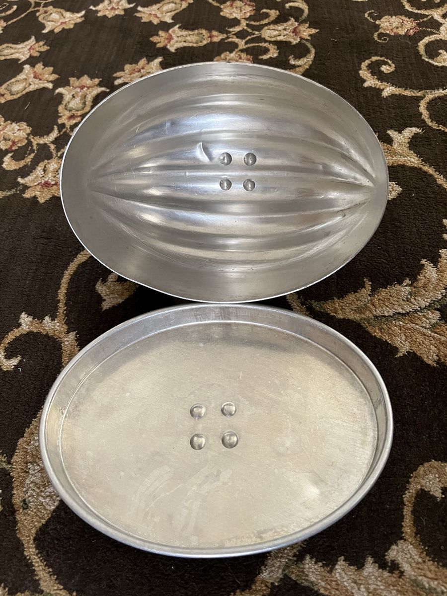 VenmoThis is a really a cool vintage/antique find. It has a ribbed look and is marked on the bottom, 'Wear-Ever aluminum made in the U.S.A.' It is 7 3/4 inches long x 5 3/4 inches across. It would be fun to hang in a kitchen or display on a shelf. No reason you couldn't use it either. This is in excellent condition. Must see! Price is firm. Selling for a parent.