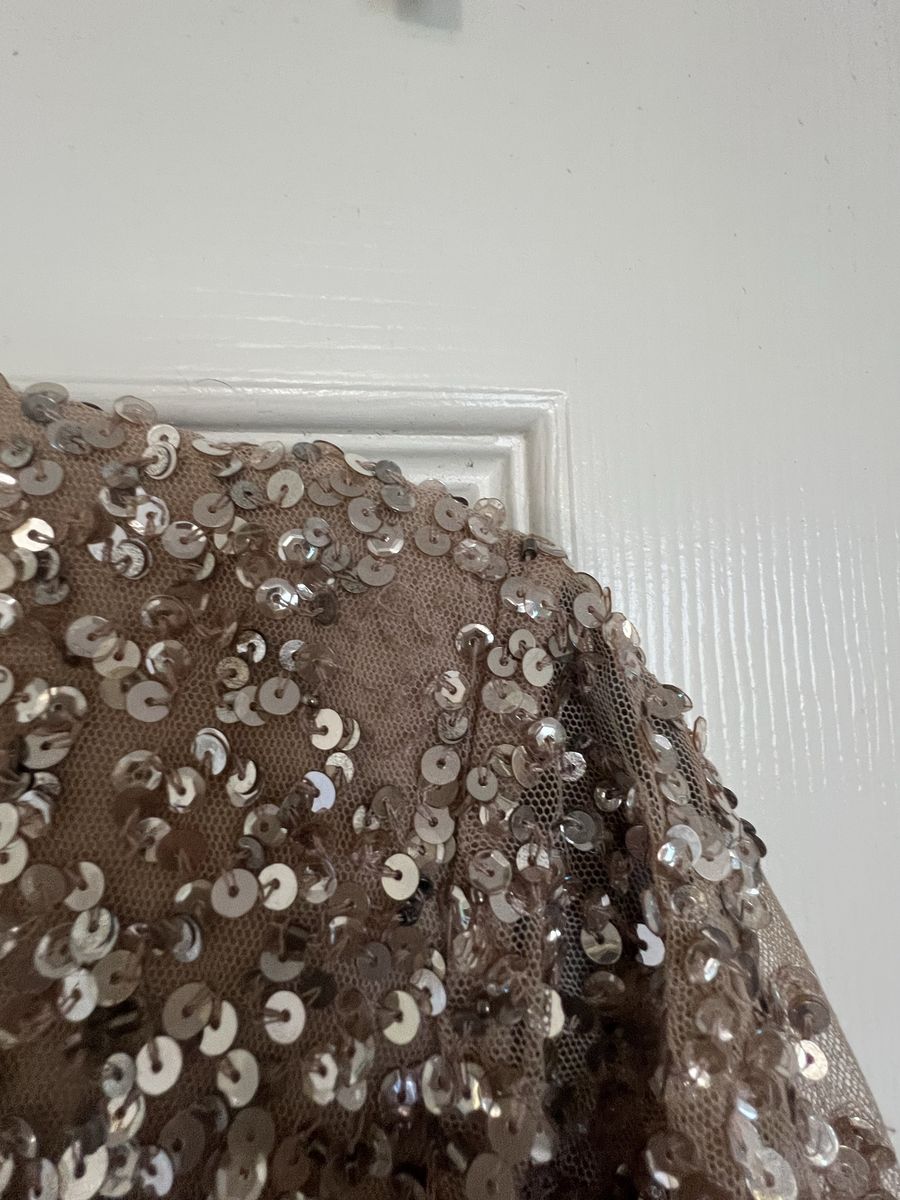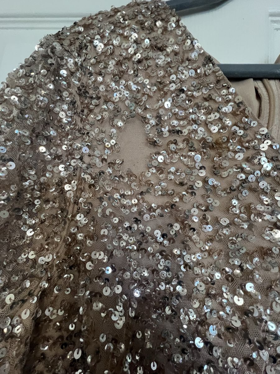 The dress still looks very pretty on and the missing sequins are not super noticeable from a distance, especially in evening lighting. Could also be easily repaired or worn as-is.