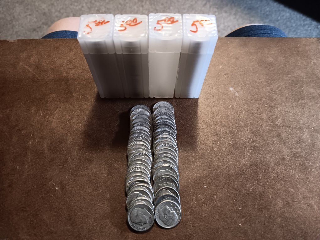 pre 64 silver dimes, various years 40s, 50s 60s, .below spot. each tubes contain $5