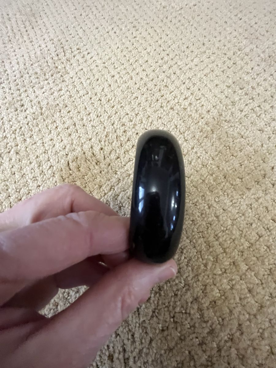 VenmoThis is a gorgeous black bangle/bracelet with 27 different size black crystal rhinestones. It has a springed hinge for easy snap on and snap off. This is from the 1940's-1950's. It is in very good condition. It is a very one of a kind piece that can be worn with anything. Selling for a parent. Price is firm.