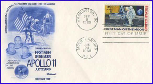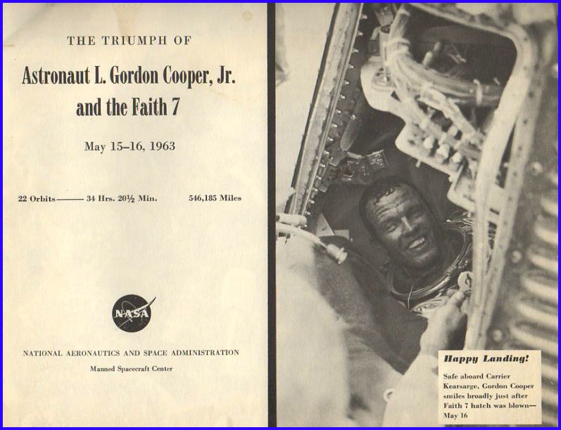 There are two nice large original booklets giving facts and details about the Mercury 7 flight of Walter Schirra and Gordon Cooper. Also, a great Apollo 11 FDC cover about the first moon landing postmarked twice as you can see in the photo.