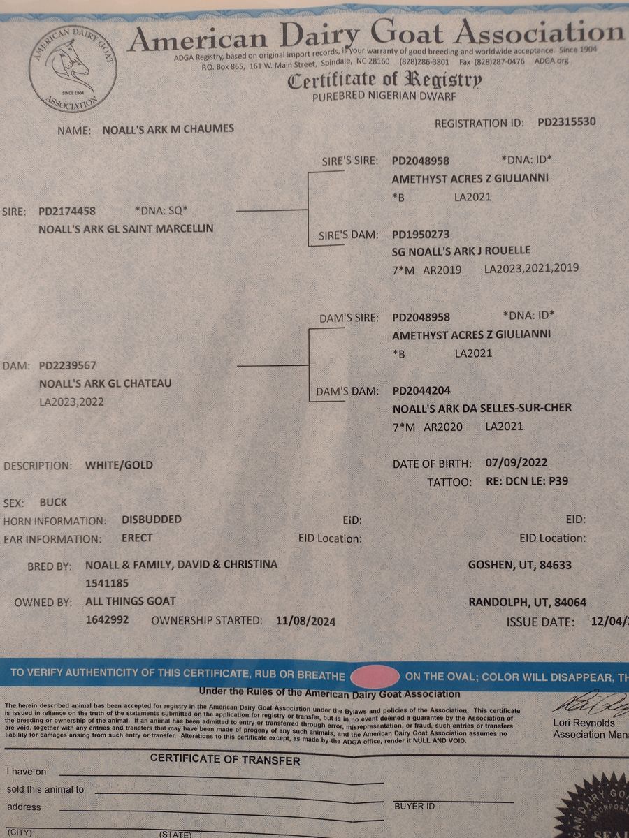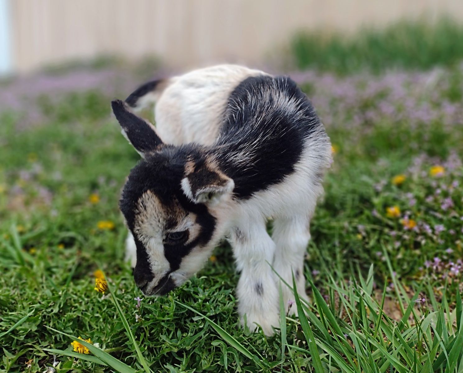 VenmoThese adorable Nigerian Dwarf kids were born on April 19th and will be ready for their new homes the beginning of June. The white one is a little buckling ($100), and the other two are doelings ($250 each or $400 for both). Their dam is not registered, but she is a great mom and a nice little milker. She has kidded without assistance and is very friendly. Their dad (Noall's Ark M Chaumes) brings very nice milk lines into the picture and is a well mannered stud (see pictures for his pedigree). Please text or call with questions. Reach out to schedule a time to come meet these adorable babies!