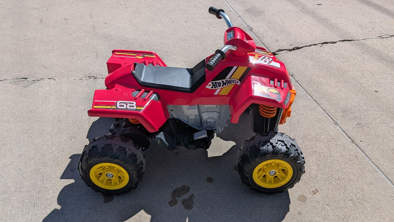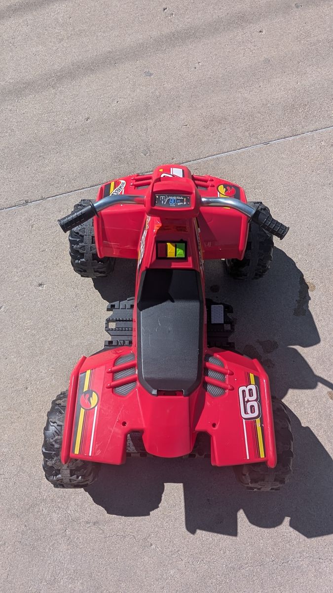 VenmoBattery-powered ride-on ATV with Hot Wheels colors and graphics. Drives 3 and 6 mph max. forward; 3 mph max. revers. Vehicle drives on hard surfaces, grass and other rough terrain.