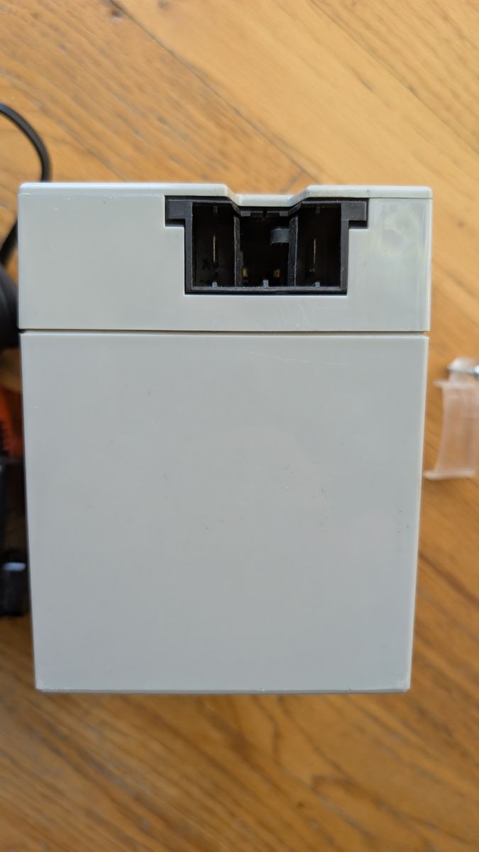 Comes with 12V battery and charger. It also has the safety cover for the High speed button.