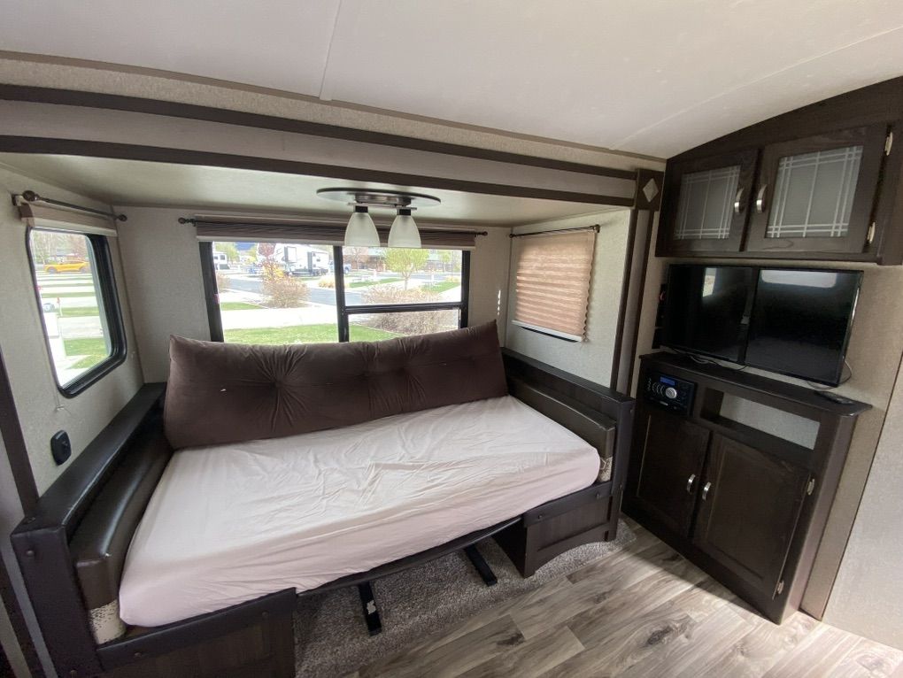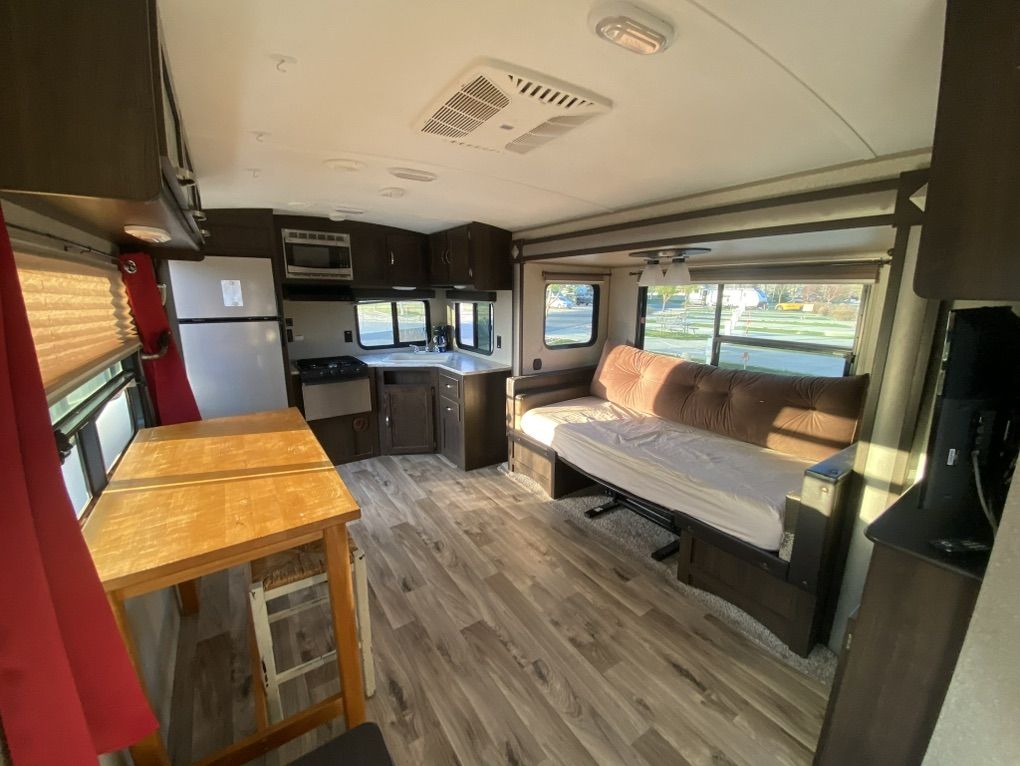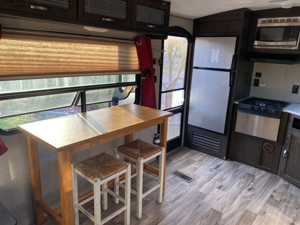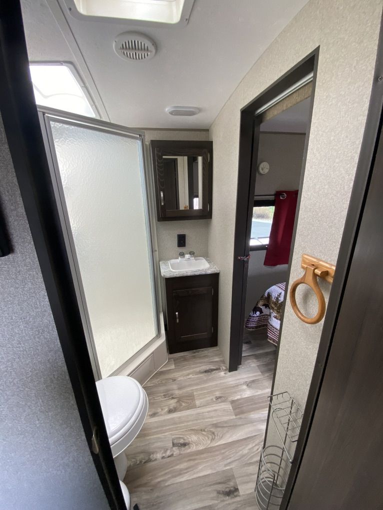 30' Springdale for sale. One slide out, rear kitchen, front bedroom, two door access. Trailer has automatic stabilizer jacks and tongue jack. Has an automatic awning. Spacious and comfortable. 30AMP Needs a couple of minor repairs-small crack in gray water output line (easily accessible), small crack in line behind toilet (easily accessible)