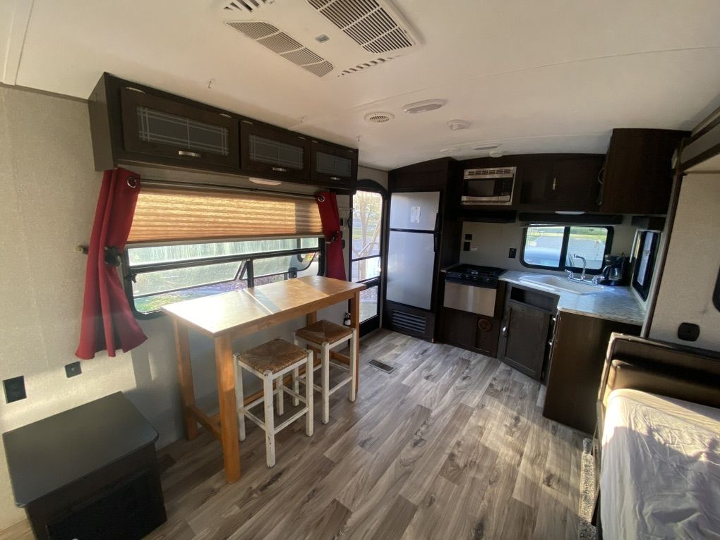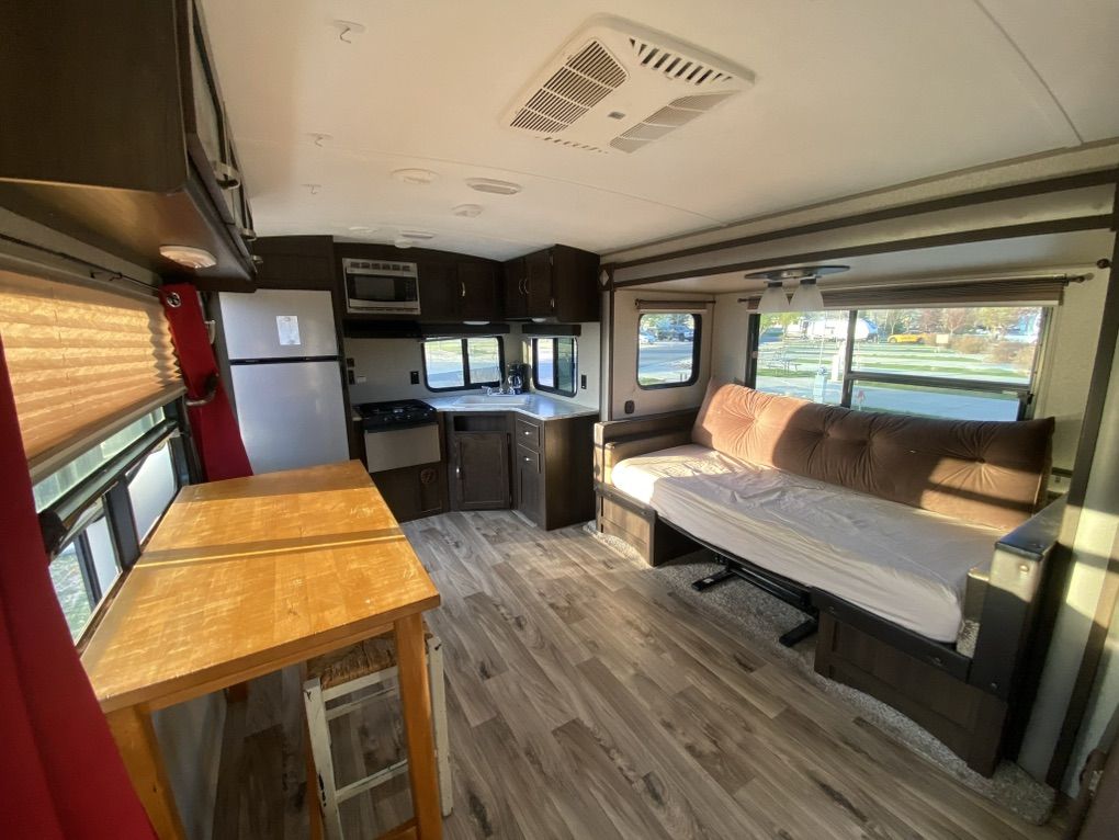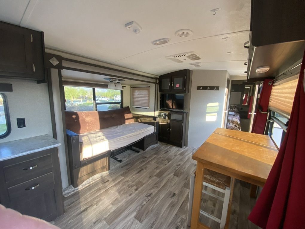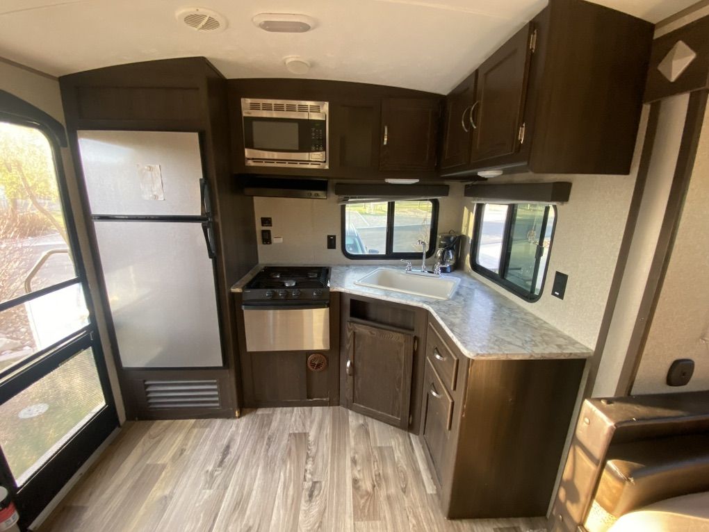 30' Springdale for sale. One slide out, rear kitchen, front bedroom, two door access. Trailer has automatic stabilizer jacks and tongue jack. Has an automatic awning. Spacious and comfortable. 30AMP Needs a couple of minor repairs-small crack in gray water output line (easily accessible), small crack in line behind toilet (easily accessible)