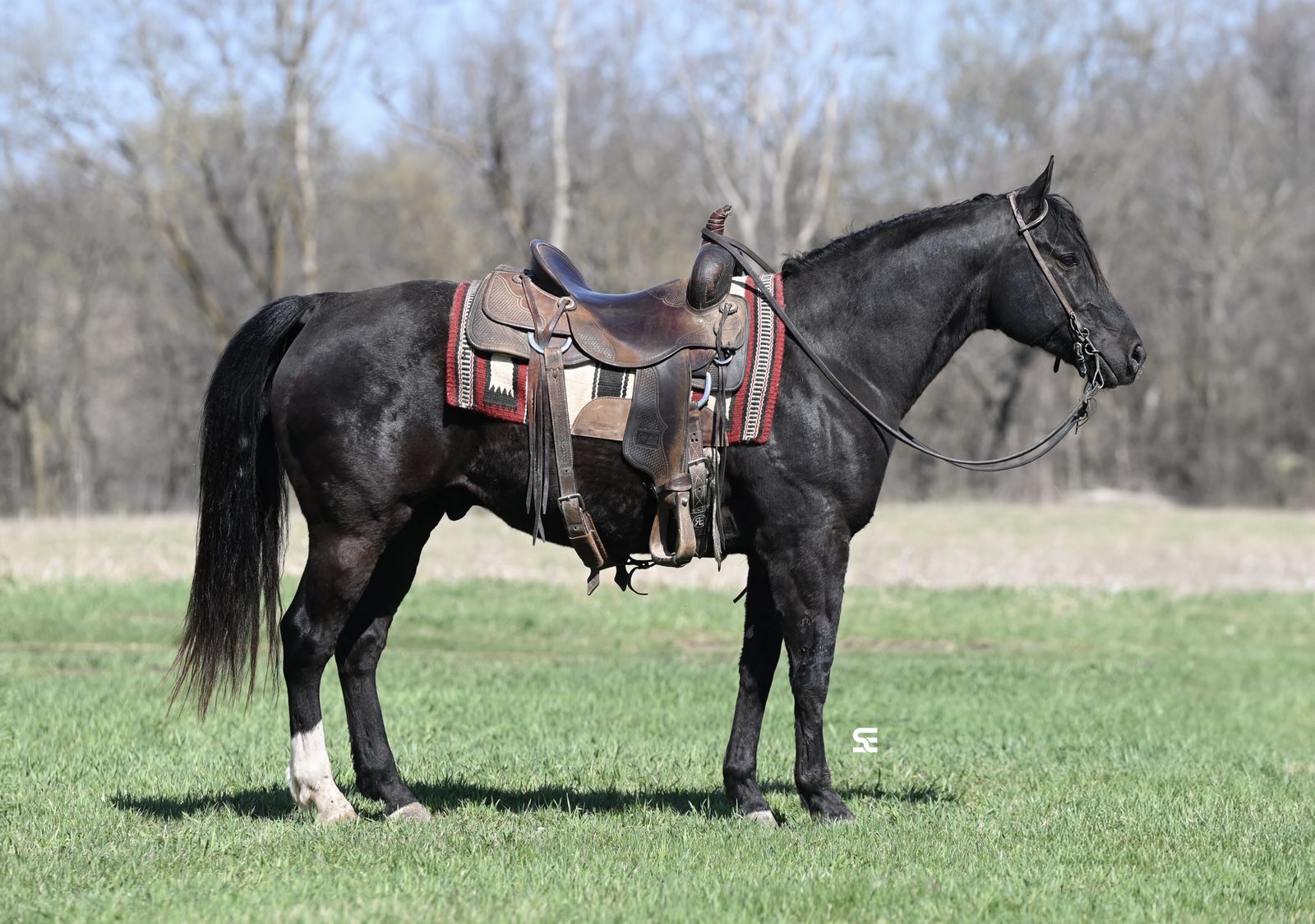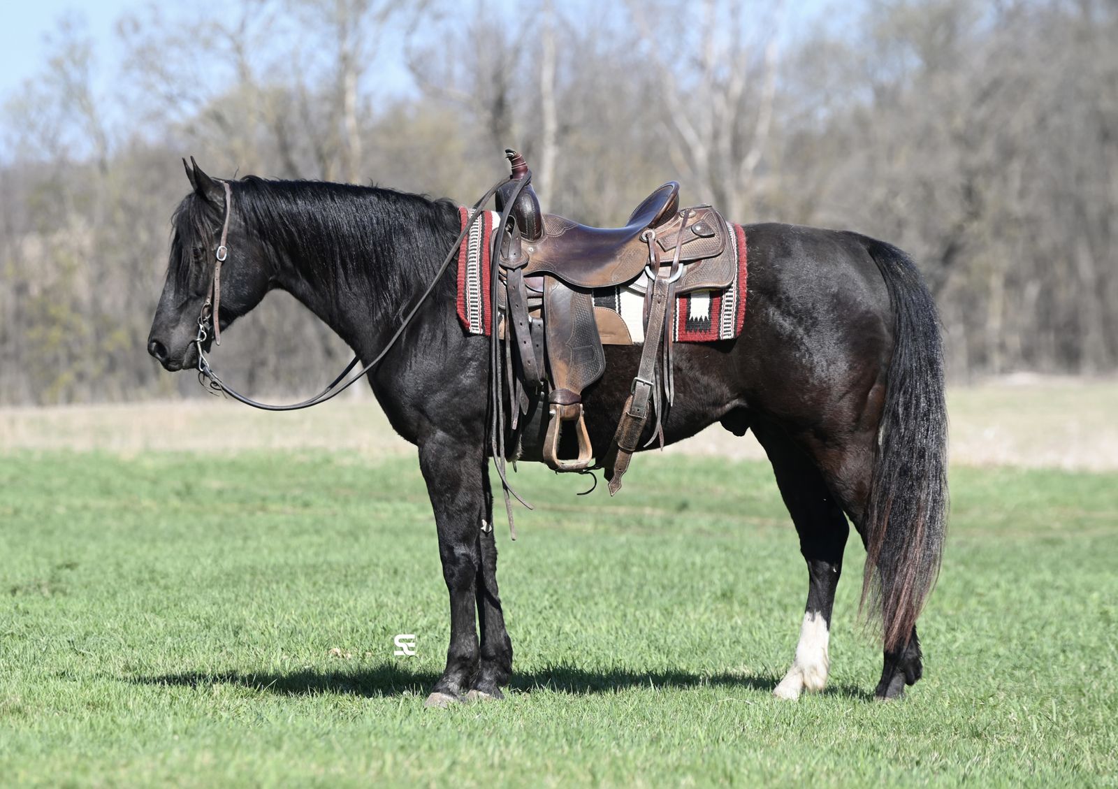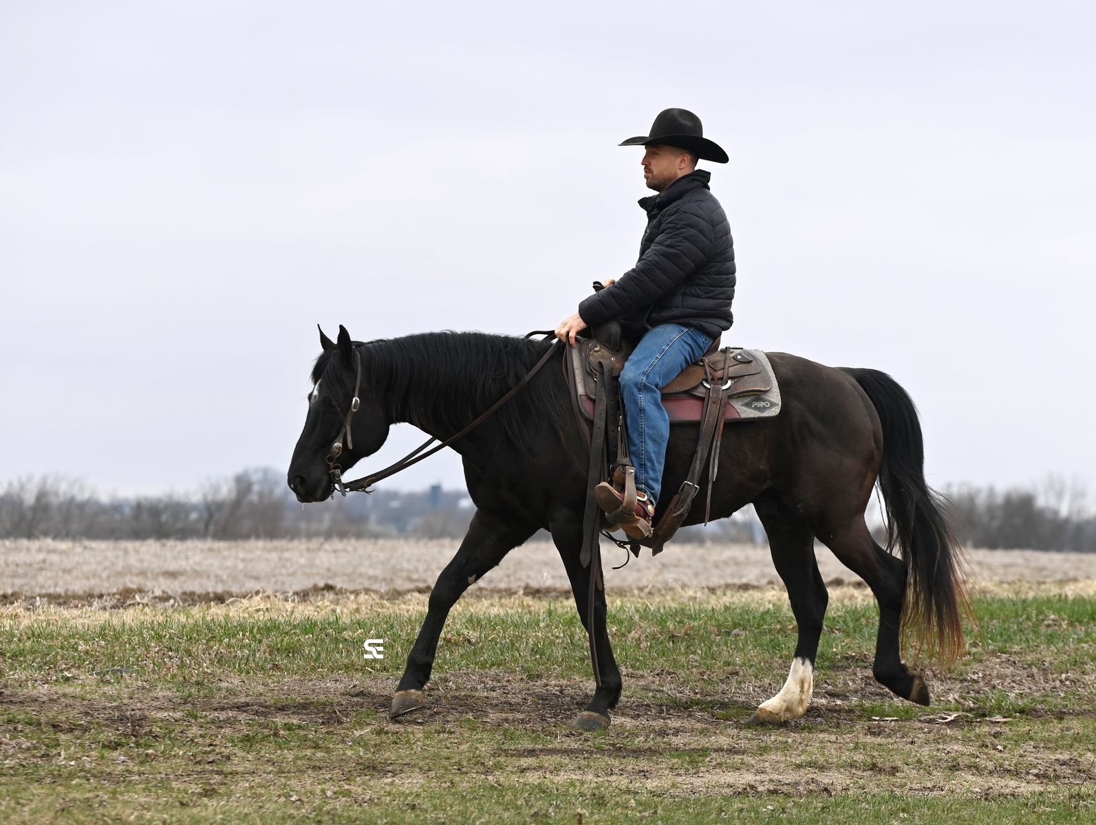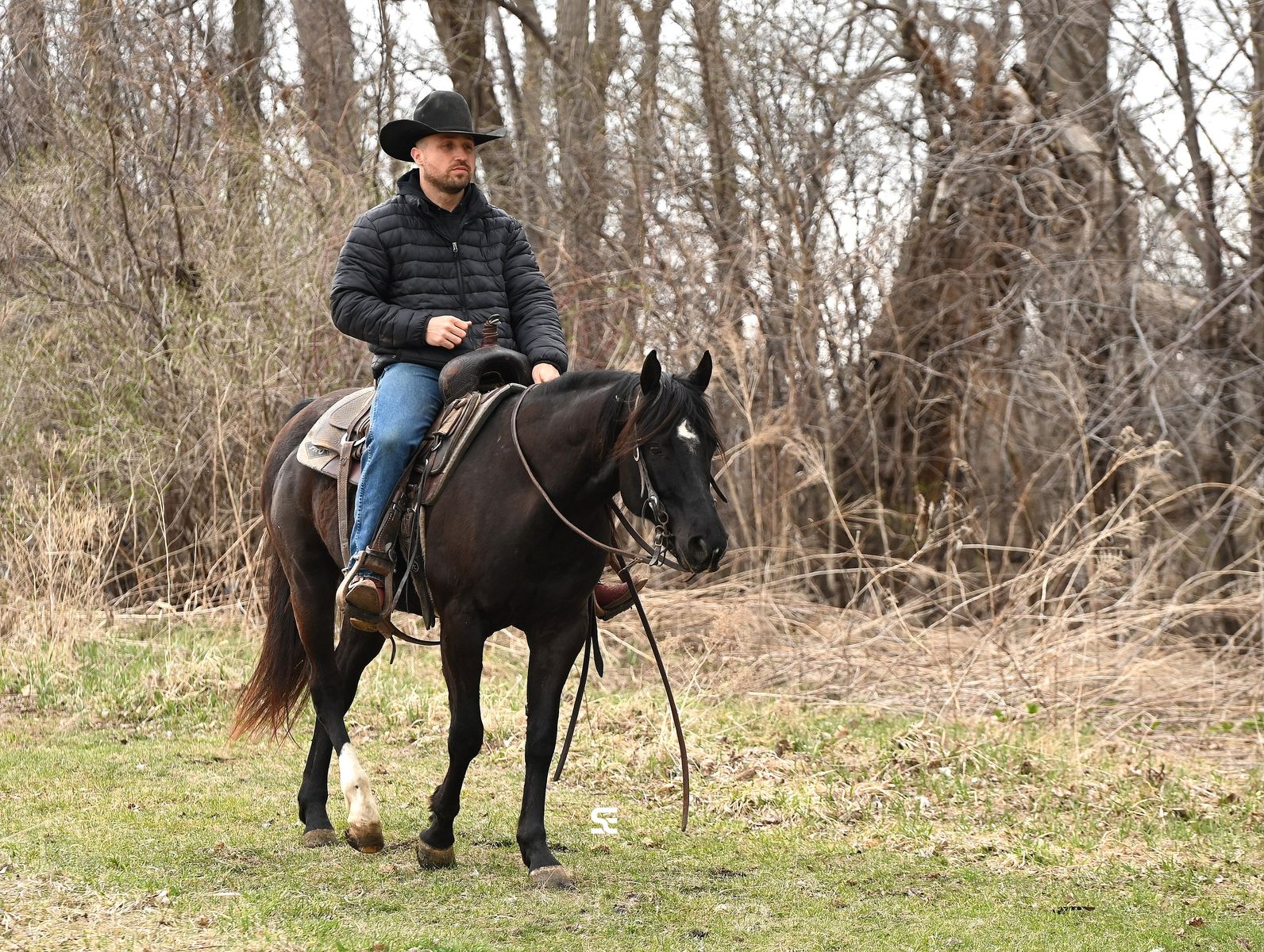 He rides both inside and outside and handles different environments just fine. Whether you want to spend time in the arena or put him to work outside, he’s willing and capable. If you’re looking for a good looking gelding with energy, talent, and a solid work ethic, Coal is one to take a look at.