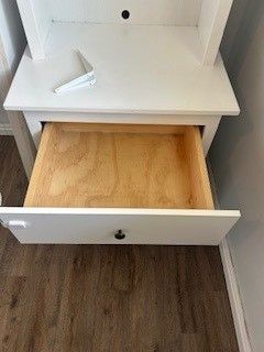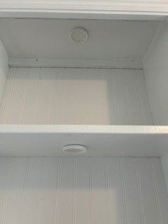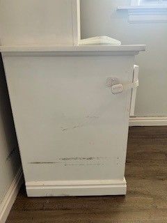VenmoMy husband built this for my mother. Her queen-sized bed fits between the shelves when the top is attached. It is made from solid wood except for the backing. The long piece in the middle is a shelf that connects the two other pieces. There are push lights under the shelves. I have the button portion of the lights. Needs some love - see pictures. Just over 9' wide when assembled. 20" deep approx. 7' high