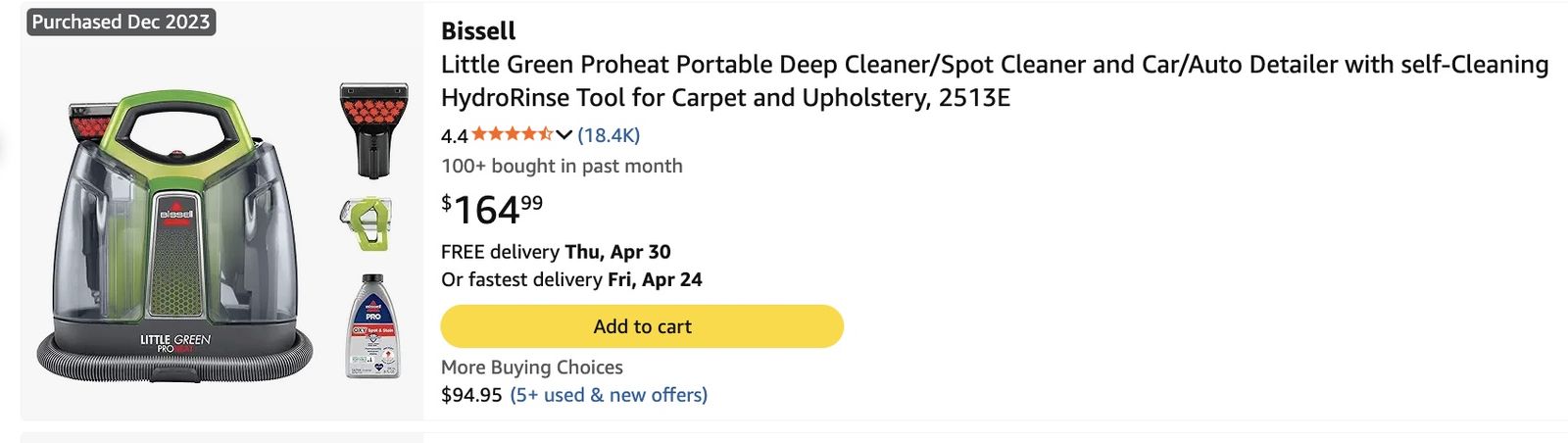 VenmoBISSELL Little Green Proheat Portable Deep Cleaner/Spot Cleaner and Car/Auto Detailer with self-Cleaning HydroRinse Tool for Carpet and Upholster
