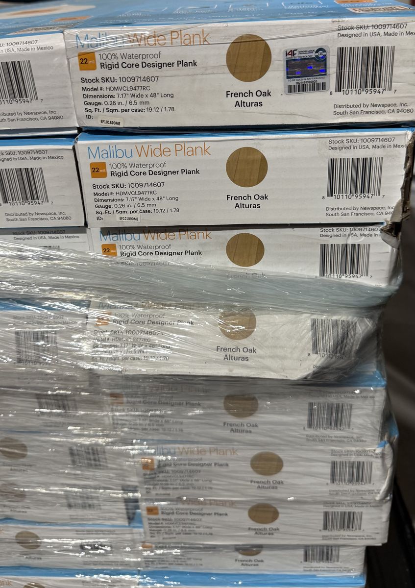 19.12 sq. ft. per box; 8 planks per box; box weight is 46.3 lbs.