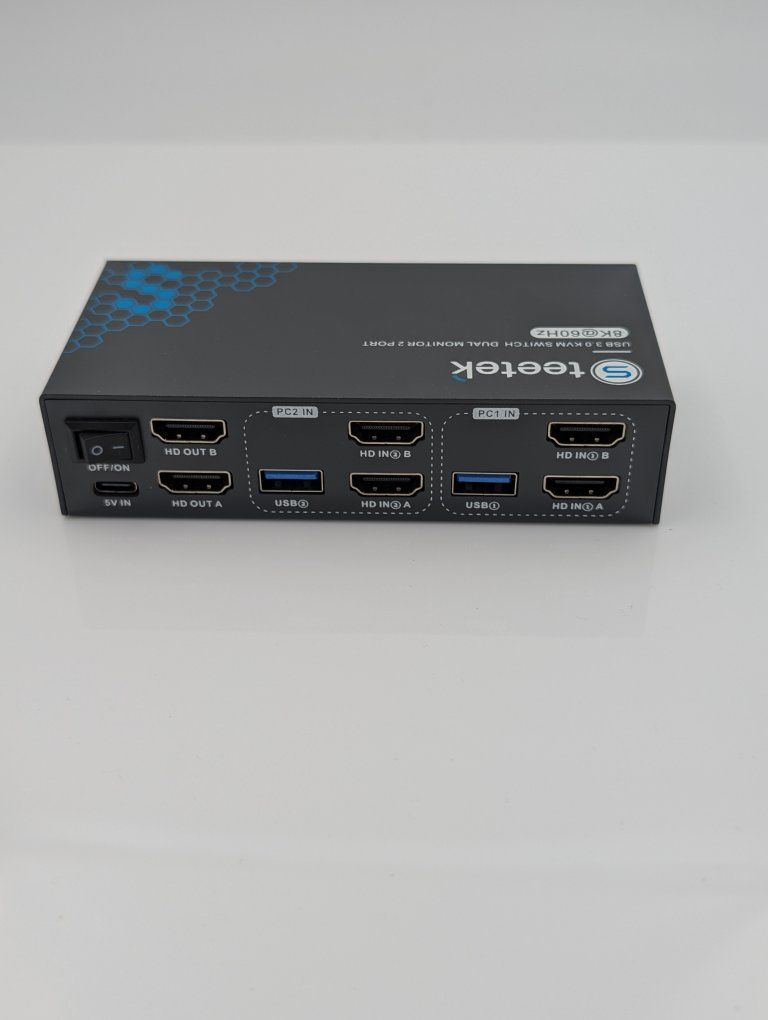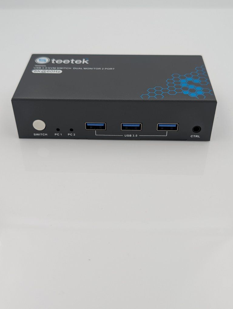 ZelleBRAND: TEETEK MODEL/TYPE: DUAL MONITOR 2-PORT KVM SWITCH MODEL NUMBER: STK-S7229H2 RESOLUTION: UP TO 8K @ 60HZ / 4K @ 120HZ INTERFACE: HDMI 2.1 / USB 3.0 COLOR: BLACK