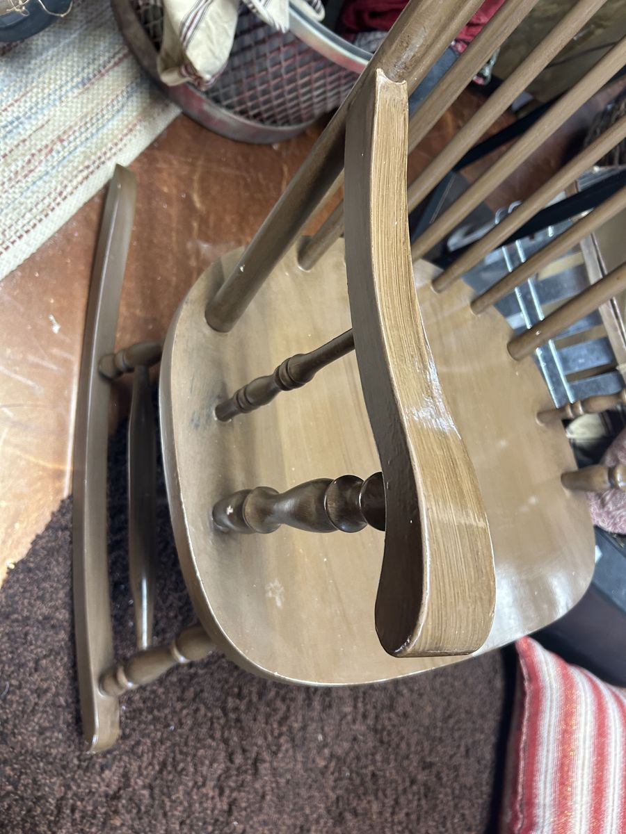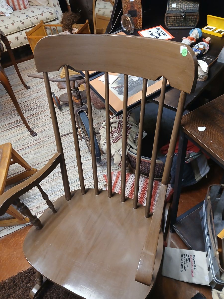 PayPalThis chair is truly in perfect condition! Solid wood with no brakes anywhere. Was repainted and done professionally. Chair height is 40.1 inches tall with a total width of 21 inches. The seat is 17 inches off the ground and 17 inches deep. $149