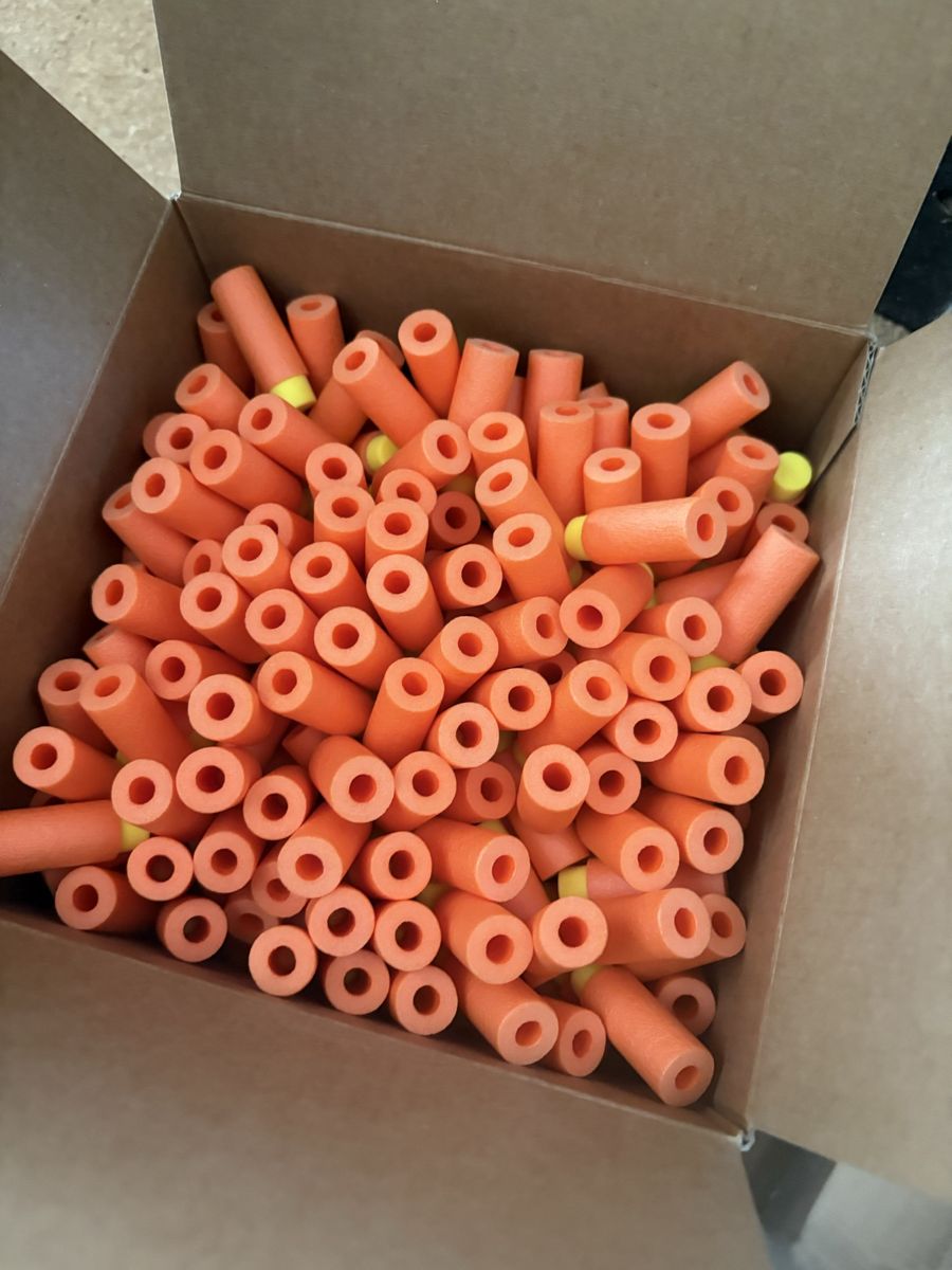 VenmoCase of 36 boxes of Nerf darts/bullets. These are the high end half size darts/bullets. Honestly no clue how many are in here but assume there are 100-200 per box x 36 boxes = 3600 to 7200 darts. Perfect for a boys party or fun nerf war. Will sell in smaller amounts if you don’t want the whole case. $10/box or $250 for the whole case.