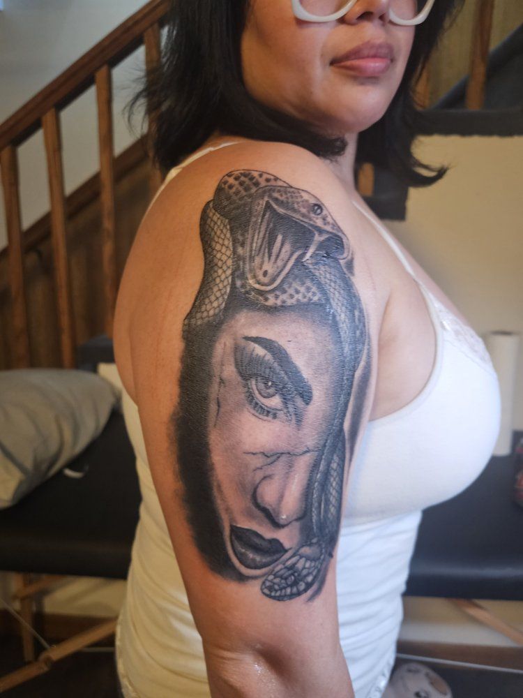 Tap out Session up to 8 hours. One large piece or several smaller pieces. 15 years experience I am a professional tattoo artist that specialize in several styles including black and gray realism, American Traditional, Neo Trad, new school, fineline etc.. you can see more of my work here https://www.instagram.com/laurissa_ridgeway_?igsh=dGgydGxuZG50NDh4