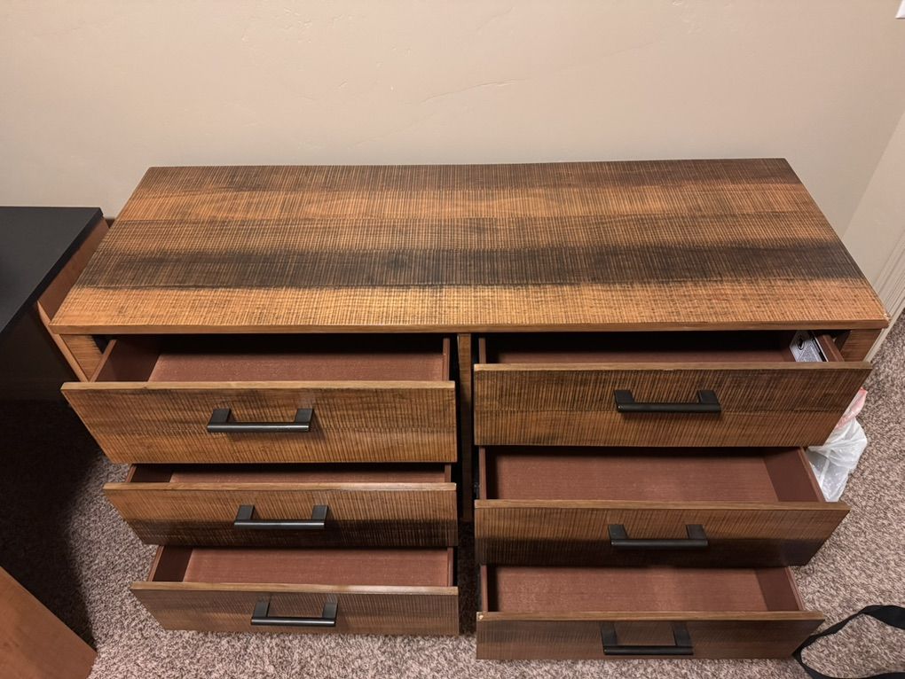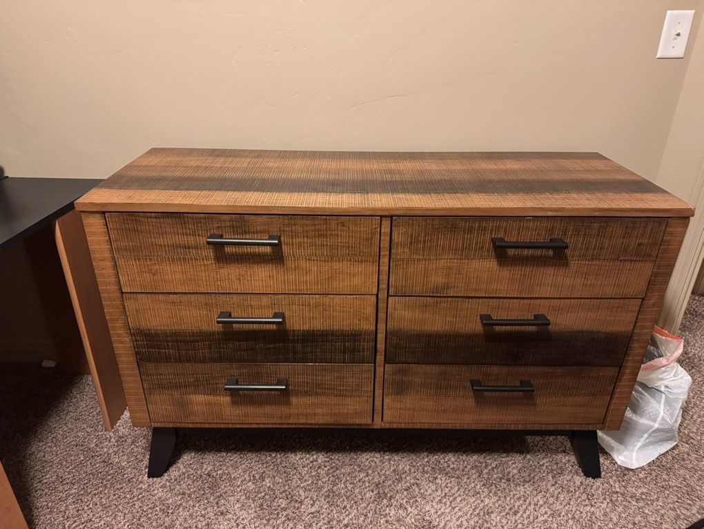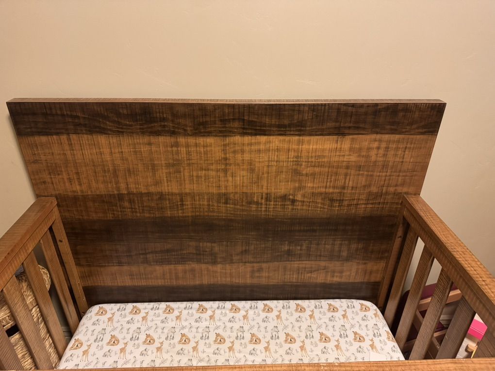 VenmoHeavy duty convertible crib! This goes from a crib to a toddler bed. Convertible parts not pictured they are still new in the original box. Unopened. Also comes with a 6 drawer dresser with soft closures. One cosmetic defect on the dresser. It was there when we bought. Our daughter used this for appx 6 months. Mattress not included.