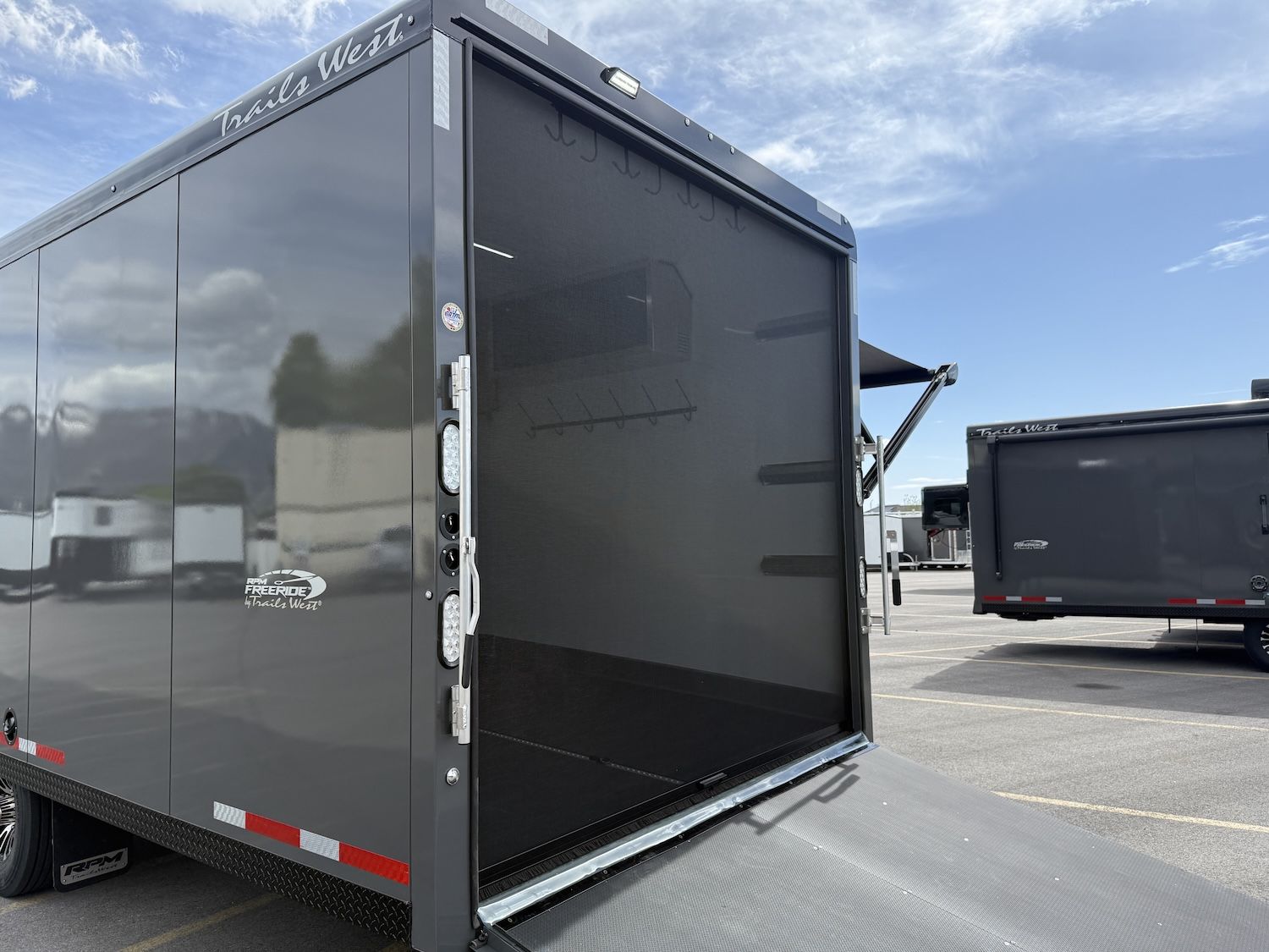 The time has finally come for the NEW 2027 RPM FREERIDE! With many new features and new sizes this trailer is hard to pass up! New 36’ length to easily fit (2) 4-seaters for the whole family! New to the 2027 year is the new access door that goes into the bathroom making the front of the trailer easily accessbile when it's loaded with toys! Added skylight in the galley area to bring in tons of natural light, along with additional storage with drawers, cabinet under sink, and a garbage can pull out drawer! Interior finished with wood cabinetry up in the living area and mill finish aluminum make this trailer feel like home! 86" Interior Height giving you plenty of clearance for these newer side by sides! Dual Zone Heat/A/C for the front of the trailer and the rear! Some new standard features for these trailers include a double step, fully accessible gooseneck enclosure, 12V Fridge, 320W Solar Panel, Accordion Door, Formica Marble Countertop, Stainless Steel Kitchen Appliances, Frameless Window, and finally a separate Toilet/Shower Room! So many new features to make this trailer stand out against its other competitors! The Trails West RPM FreeRide is designed to elevate your recreational experiences to new heights. Whether you’re embarking on a weekend getaway or competing in adrenaline-fueled competitions, the RPM FreeRide transports your vehicles with ease and confidence. With its robust construction, versatile layout, and innovative features, the RPM FreeRide offers unparalleled convenience and peace of mind for all your outdoor adventures. From spacious cargo areas to secure tie-down points, this trailer provides the perfect blend of functionality and flexibility to accommodate all your gear and equipment. The Trails West RPM FreeRide is the ultimate choice for enthusiasts who refuse to compromise on quality and reliability.