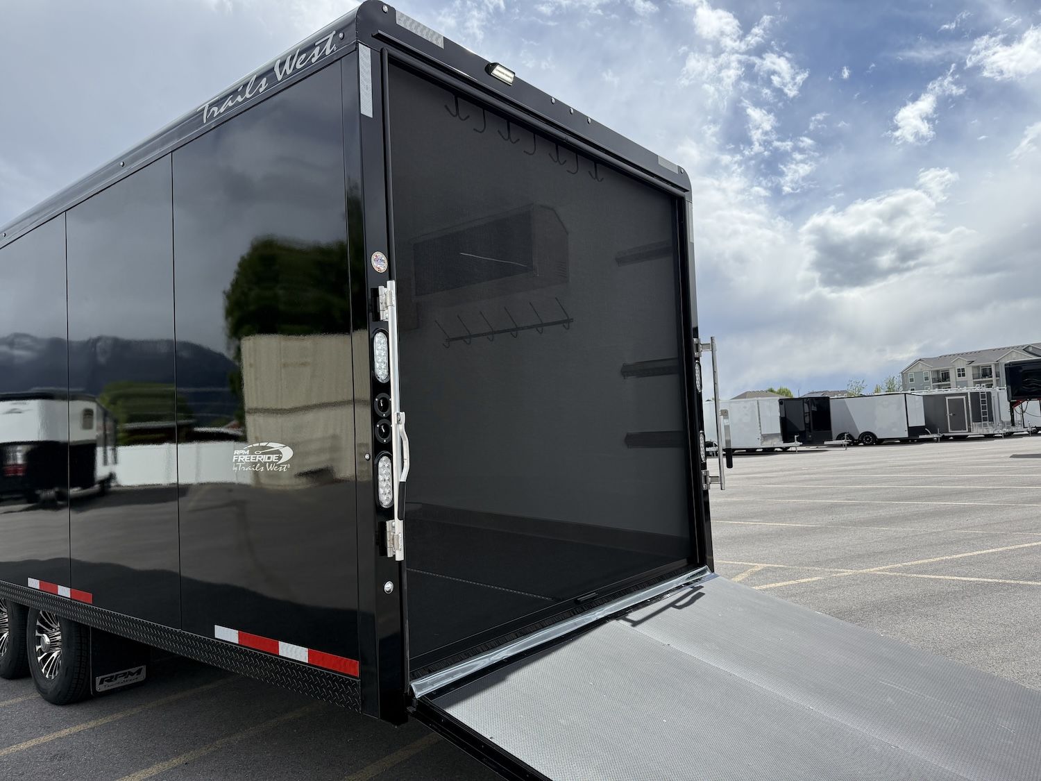 The time has finally come for the NEW 2027 RPM FREERIDE! With many new features and new sizes this trailer is hard to pass up! New 30’ length to easily fit (1) 4-seater and (1) 2-seater for the whole family! New to the 2027 year is the new access door that goes into the bathroom making the front of the trailer easily accessbile when it's loaded with toys! Added skylight in the galley area to bring in tons of natural light, along with additional storage with drawers, cabinet under sink, and a garbage can pull out drawer! Interior finished with wood cabinetry up in the living area and mill finish aluminum make this trailer feel like home! 86" Interior Height giving you plenty of clearance for these newer side by sides! Dual Zone Heat/A/C for the front of the trailer and the rear! Some new standard features for these trailers include a double step, fully accessible gooseneck enclosure, 12V Fridge, 320W Solar Panel, Accordion Door, Formica Marble Countertop, Stainless Steel Kitchen Appliances, Frameless Window, and finally a separate Toilet/Shower Room! So many new features to make this trailer stand out against its other competitors! The Trails West RPM FreeRide is designed to elevate your recreational experiences to new heights. Whether you’re embarking on a weekend getaway or competing in adrenaline-fueled competitions, the RPM FreeRide transports your vehicles with ease and confidence. With its robust construction, versatile layout, and innovative features, the RPM FreeRide offers unparalleled convenience and peace of mind for all your outdoor adventures. From spacious cargo areas to secure tie-down points, this trailer provides the perfect blend of functionality and flexibility to accommodate all your gear and equipment. The Trails West RPM FreeRide is the ultimate choice for enthusiasts who refuse to compromise on quality and reliability.