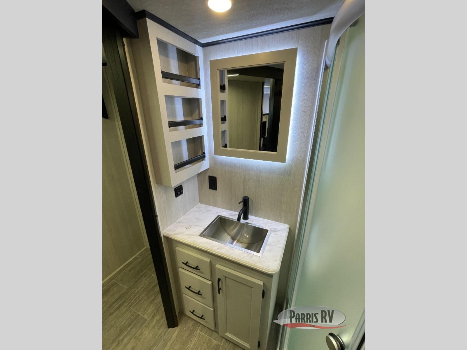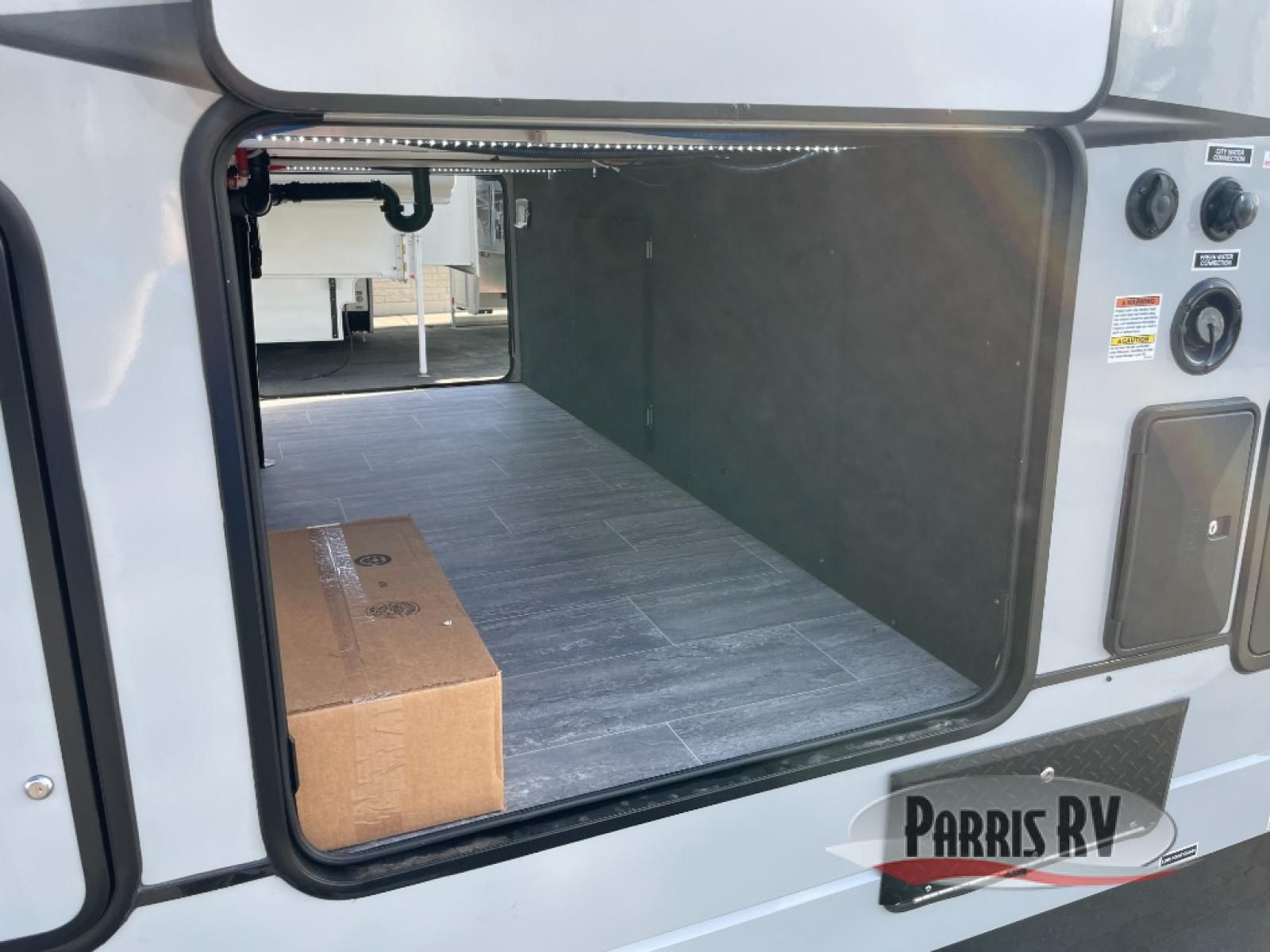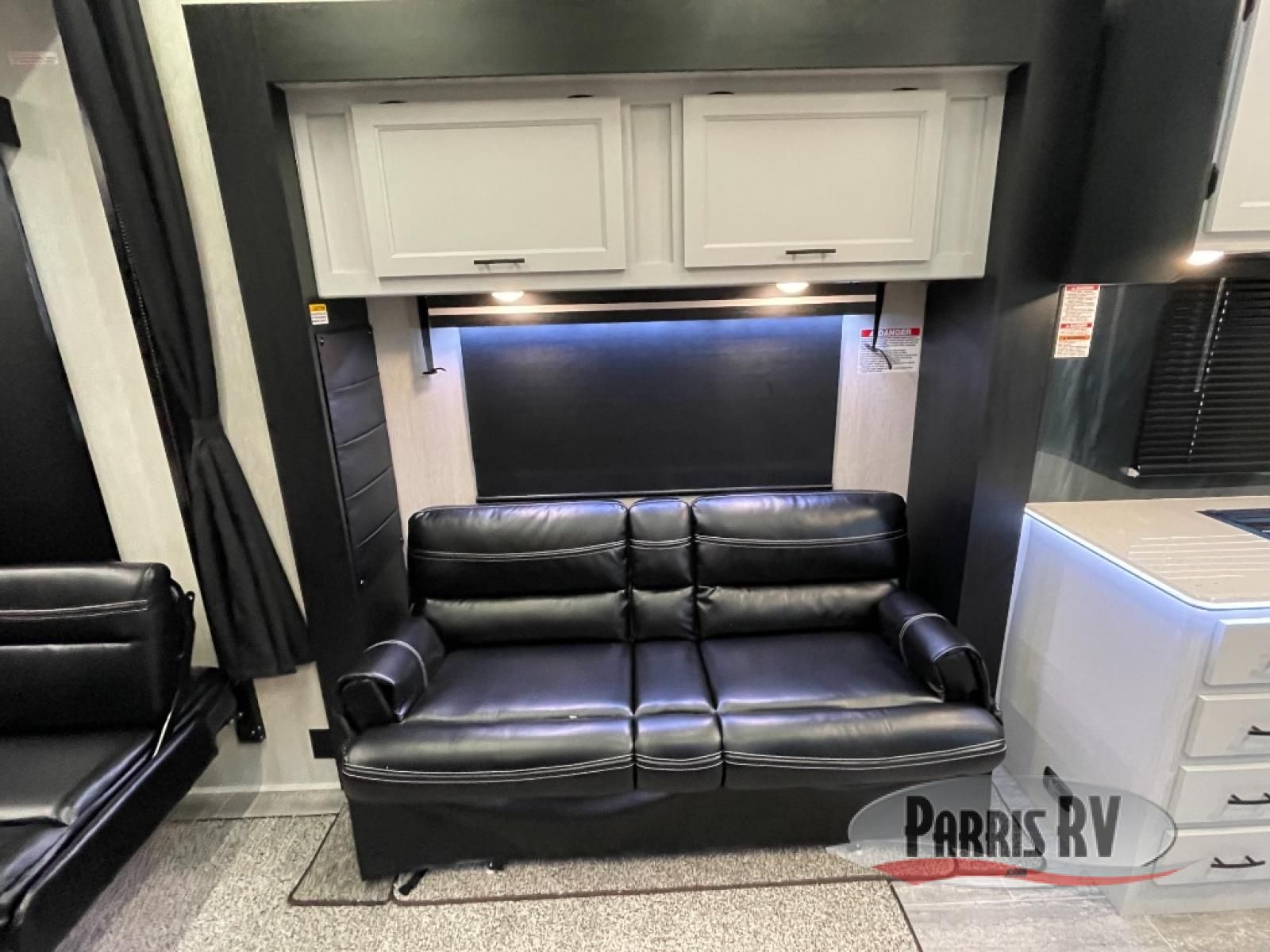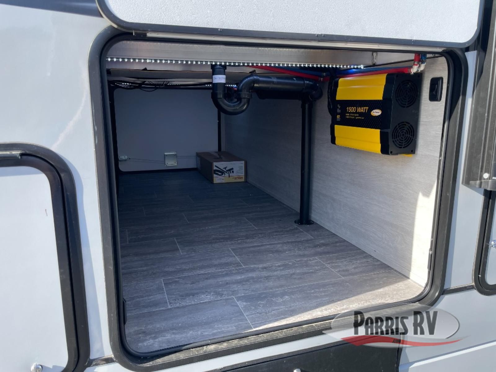 This toy hauler with an angled kitchen will be perfect for all your outdoor adventures. The 17' 6" cargo length and 102" wide body design can easily store your toys on the way to the lake, and the beaver tail ramp door will make unloading a breeze. There is a power sofa bed and dual swivel/rocker chairs to relax on, plus a power queen bed if you have guests stay over. Everyone can freshen up in the spacious full bath and you'll love the front private bedroom with an RV king bed and a vanity/wardrobe slide out to keep your clothes tidy. This model also includes a full kitchen with a three burner cooktop, an extra large over-the-range residential microwave, plus an 8 cu. ft. extra large double door refrigerator!