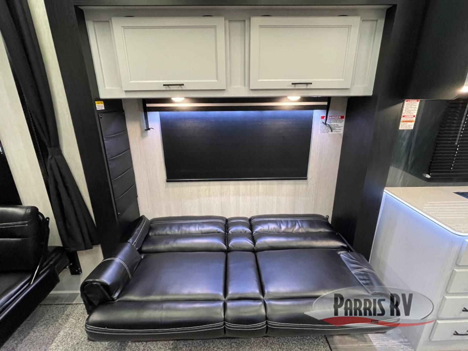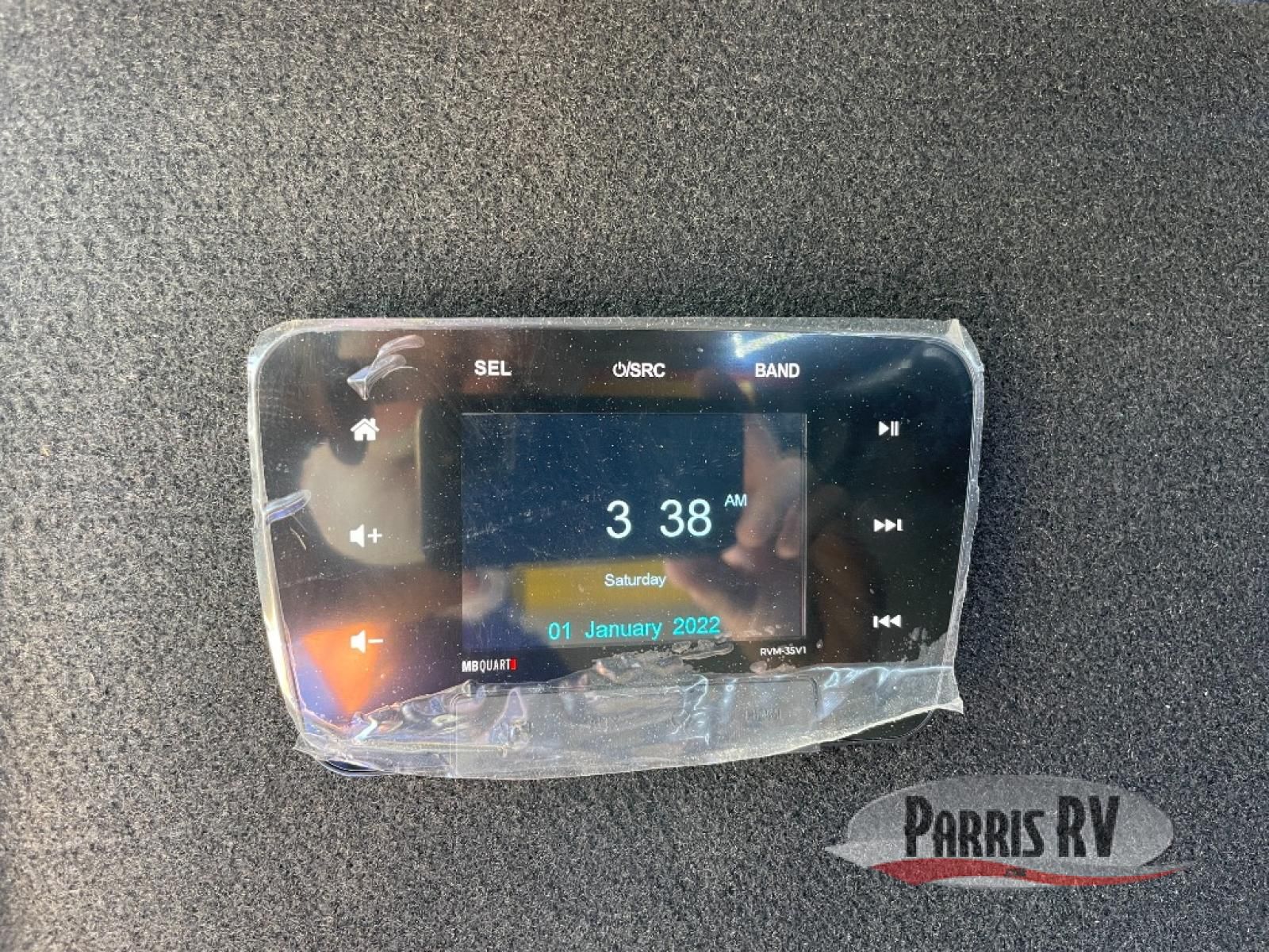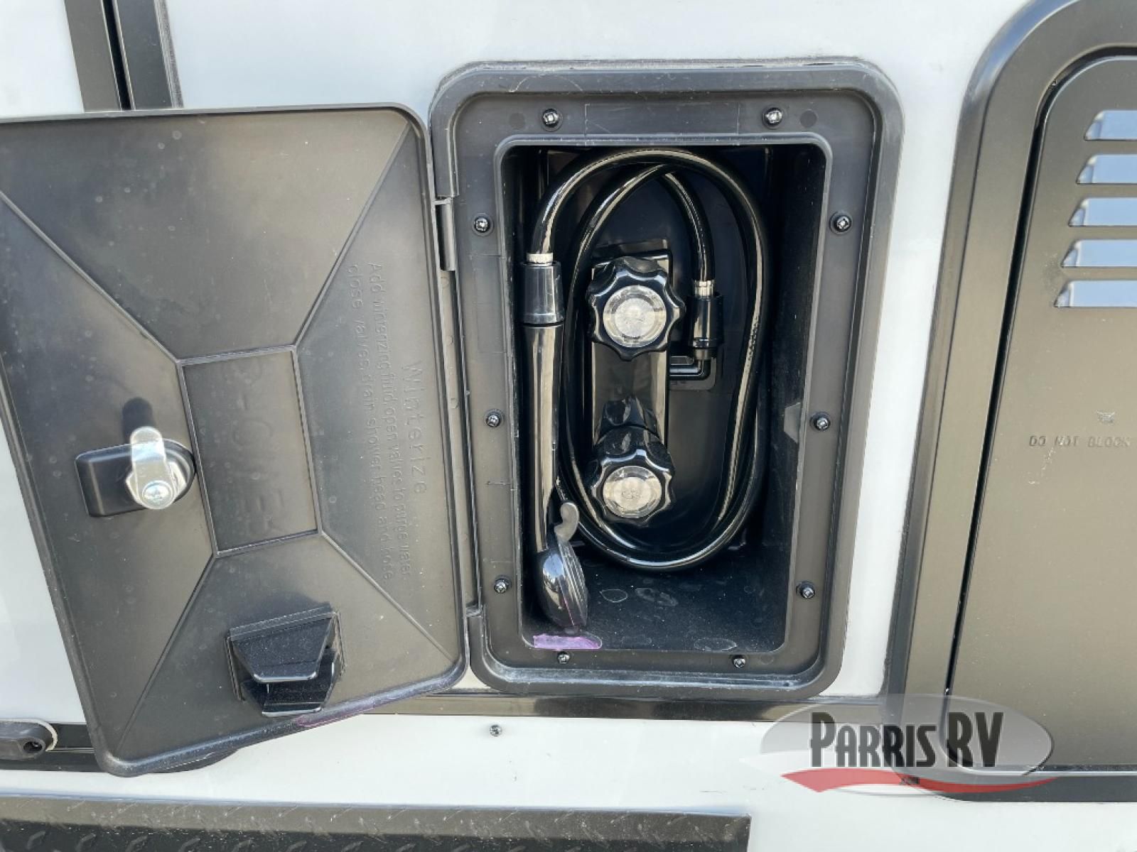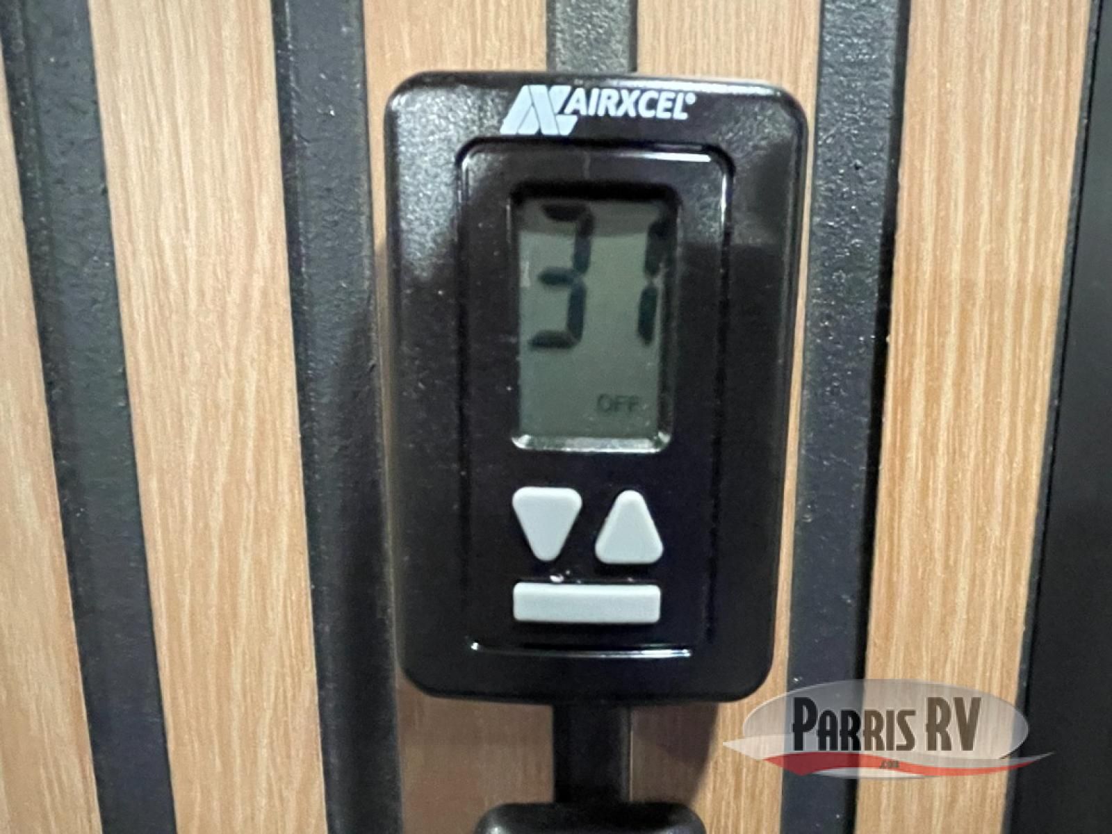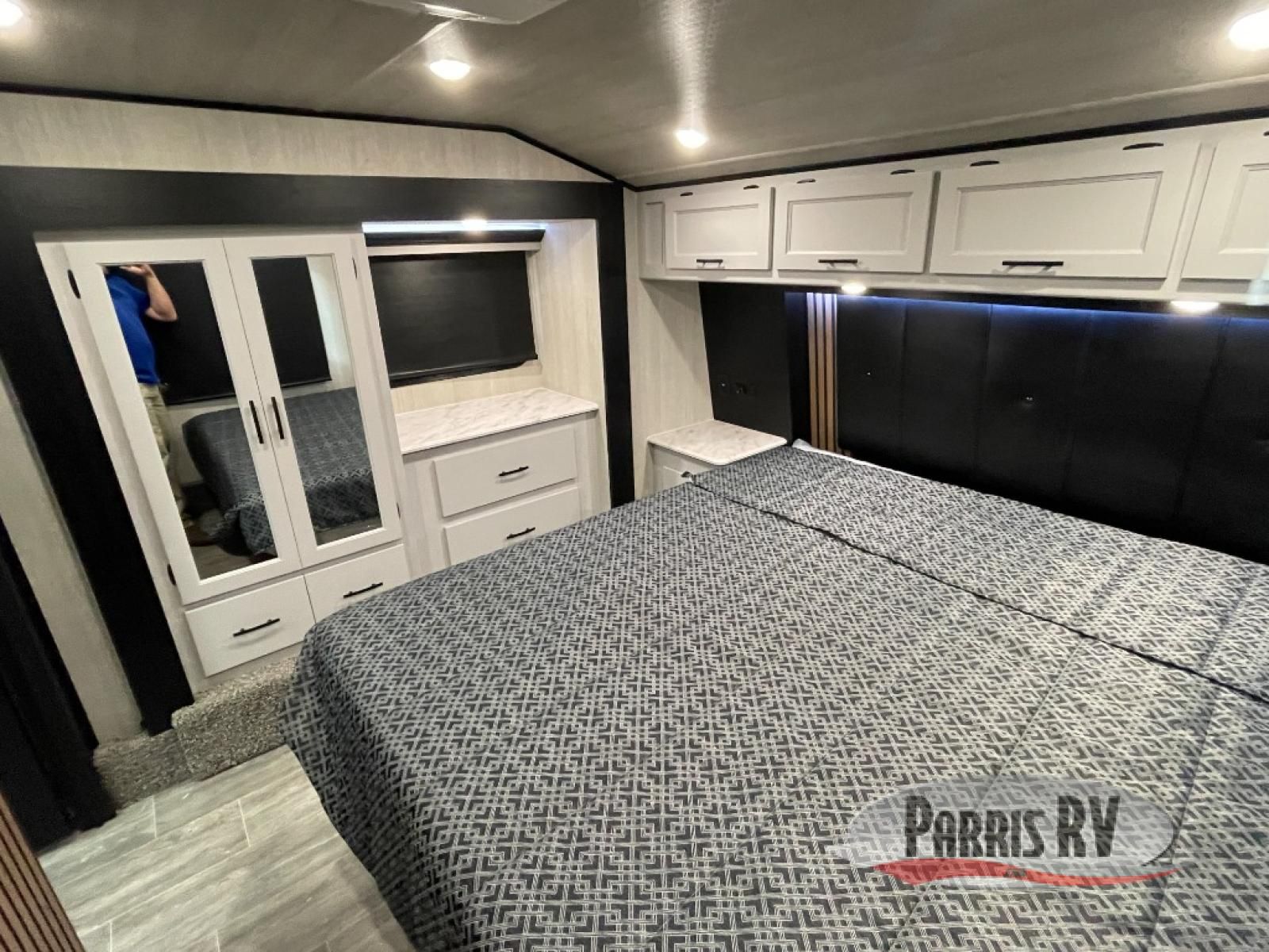 This toy hauler with an angled kitchen will be perfect for all your outdoor adventures. The 17' 6" cargo length and 102" wide body design can easily store your toys on the way to the lake, and the beaver tail ramp door will make unloading a breeze. There is a power sofa bed and dual swivel/rocker chairs to relax on, plus a power queen bed if you have guests stay over. Everyone can freshen up in the spacious full bath and you'll love the front private bedroom with an RV king bed and a vanity/wardrobe slide out to keep your clothes tidy. This model also includes a full kitchen with a three burner cooktop, an extra large over-the-range residential microwave, plus an 8 cu. ft. extra large double door refrigerator!