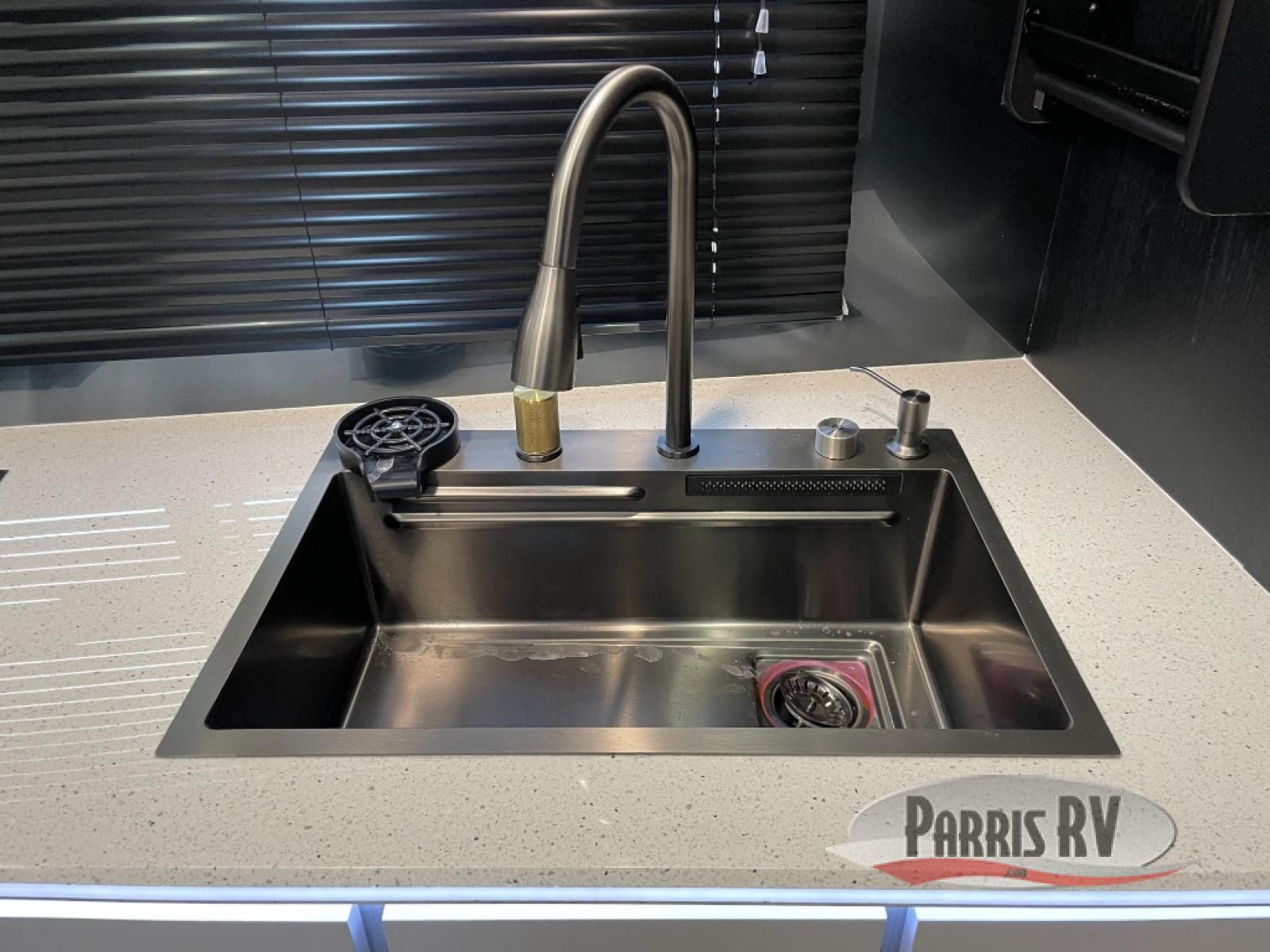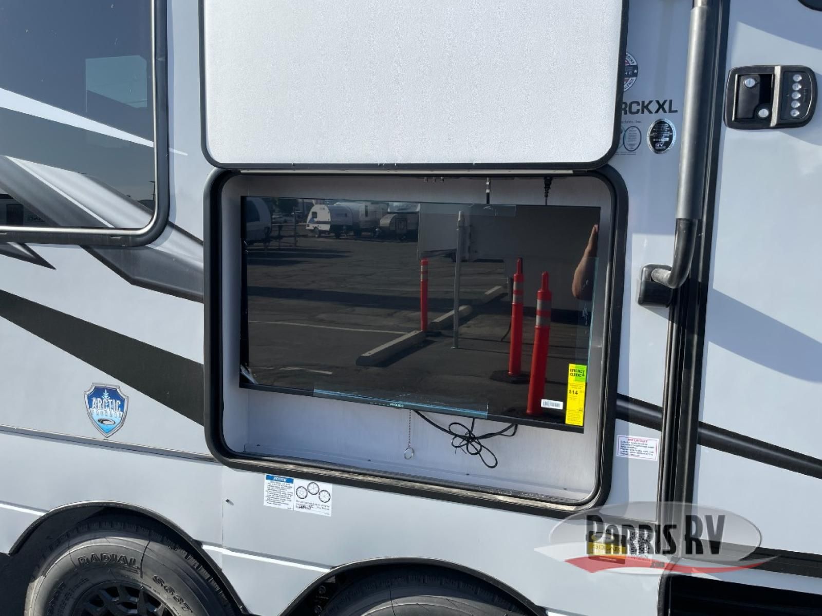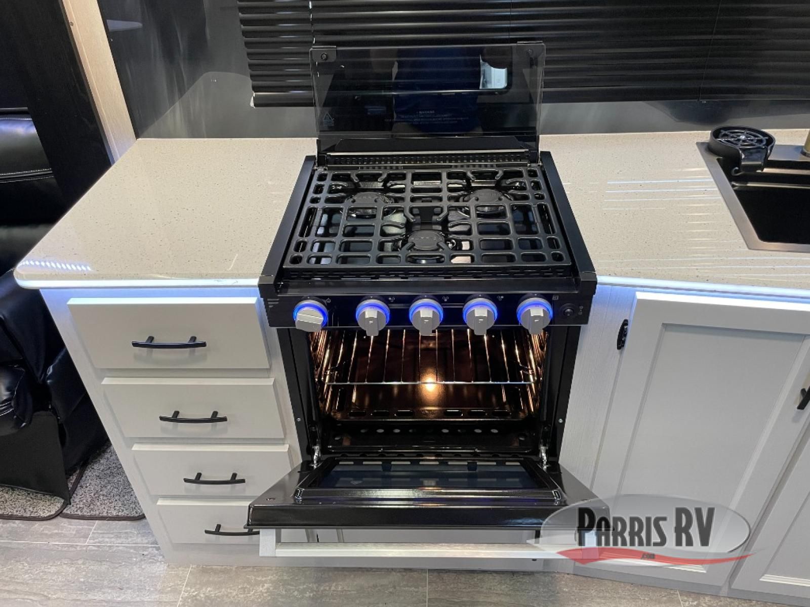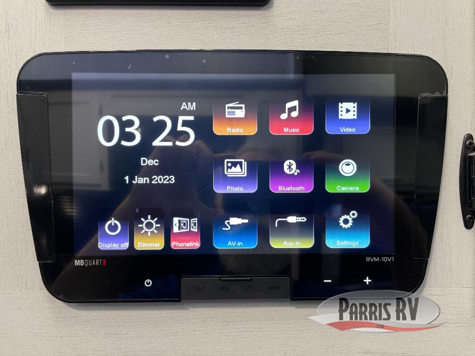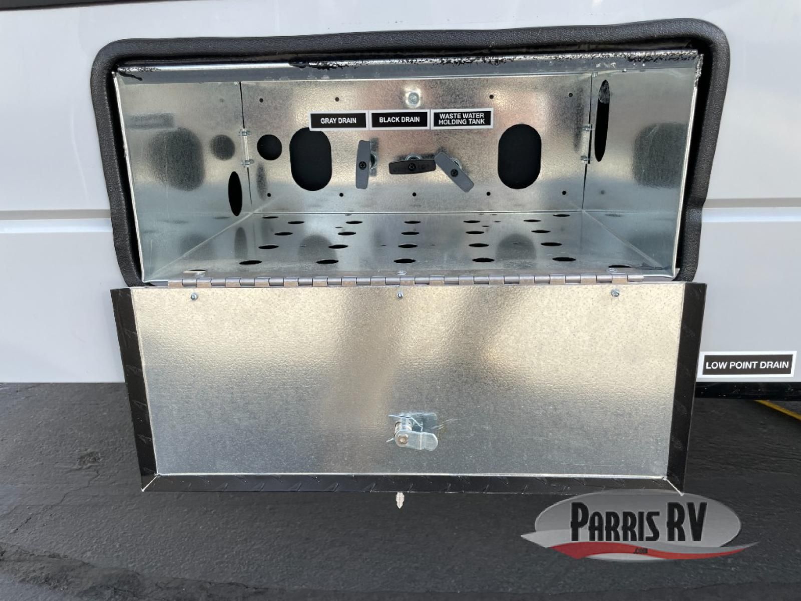 This toy hauler with an angled kitchen will be perfect for all your outdoor adventures. The 17' 6" cargo length and 102" wide body design can easily store your toys on the way to the lake, and the beaver tail ramp door will make unloading a breeze. There is a power sofa bed and dual swivel/rocker chairs to relax on, plus a power queen bed if you have guests stay over. Everyone can freshen up in the spacious full bath and you'll love the front private bedroom with an RV king bed and a vanity/wardrobe slide out to keep your clothes tidy. This model also includes a full kitchen with a three burner cooktop, an extra large over-the-range residential microwave, plus an 8 cu. ft. extra large double door refrigerator!