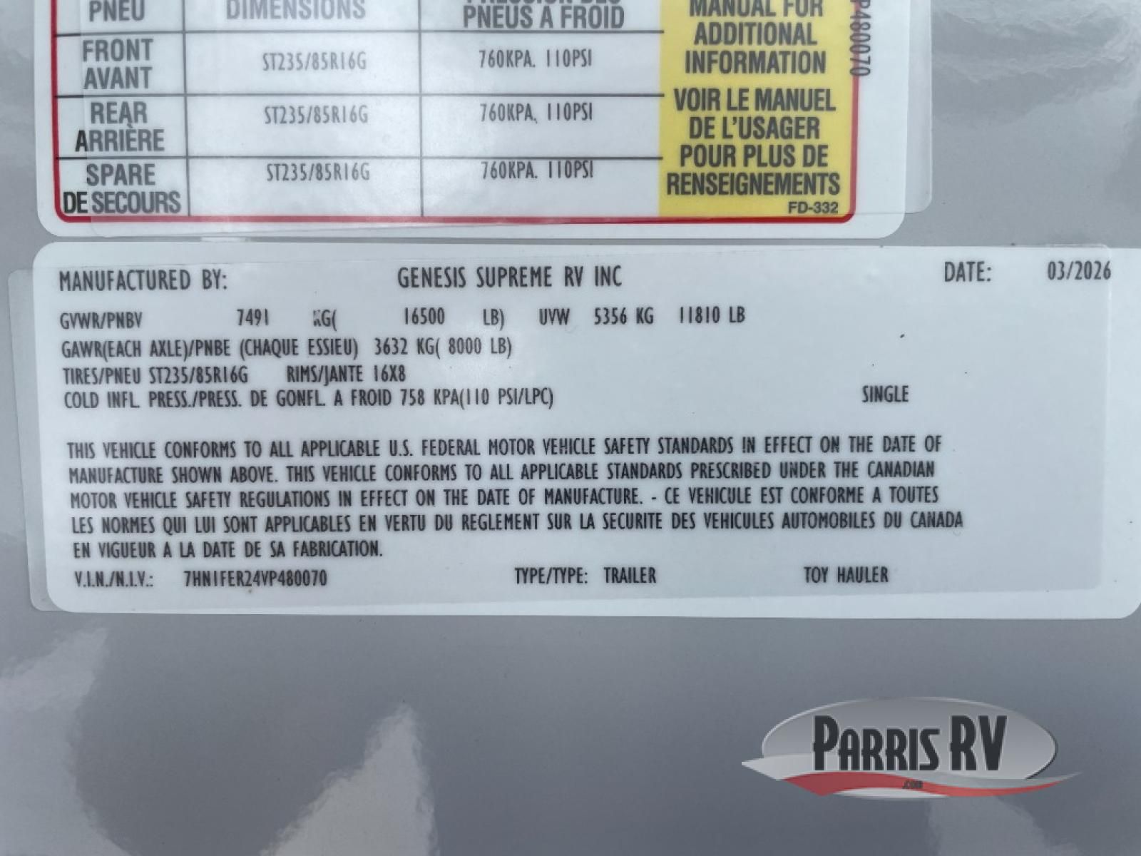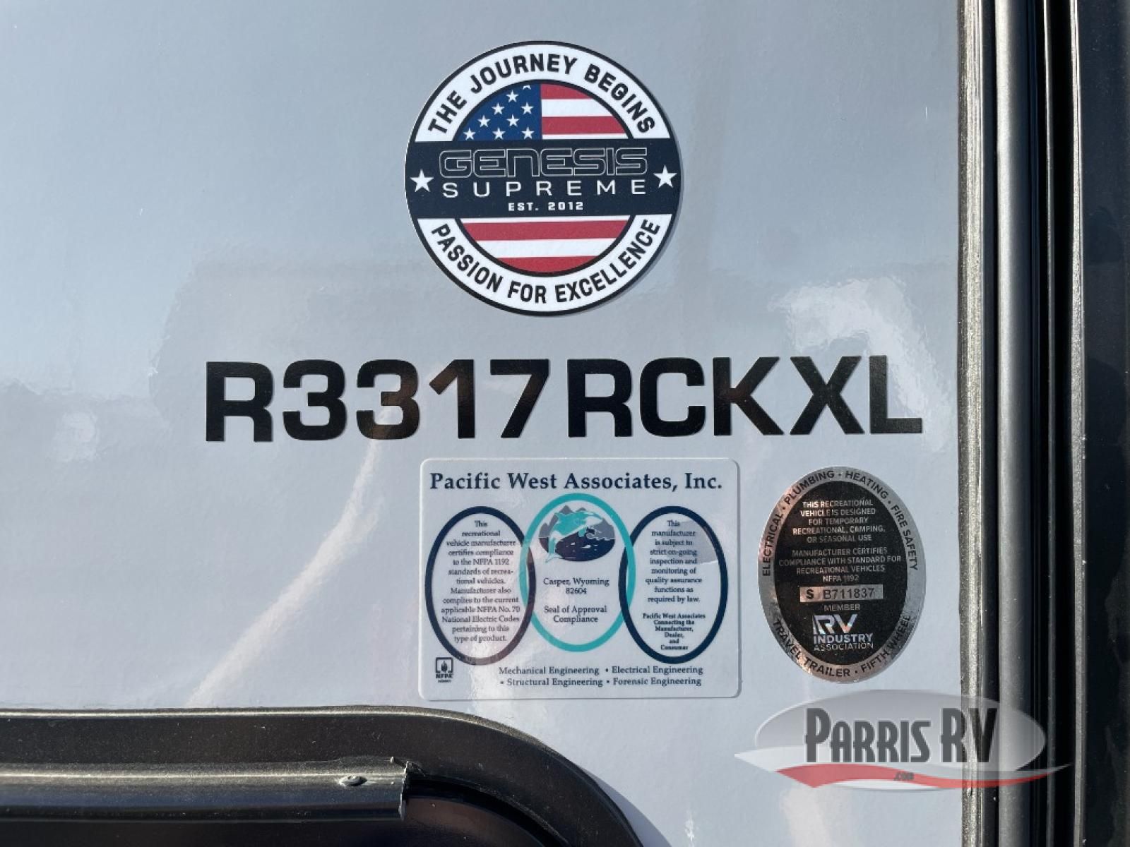 Genesis Supreme Rage'n fifth wheel toy hauler 3317RCKXL highlights: