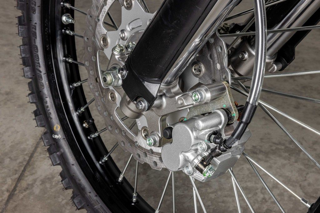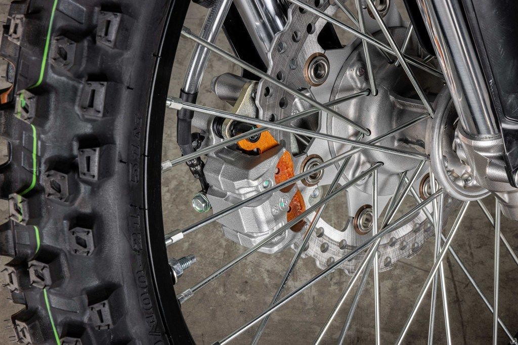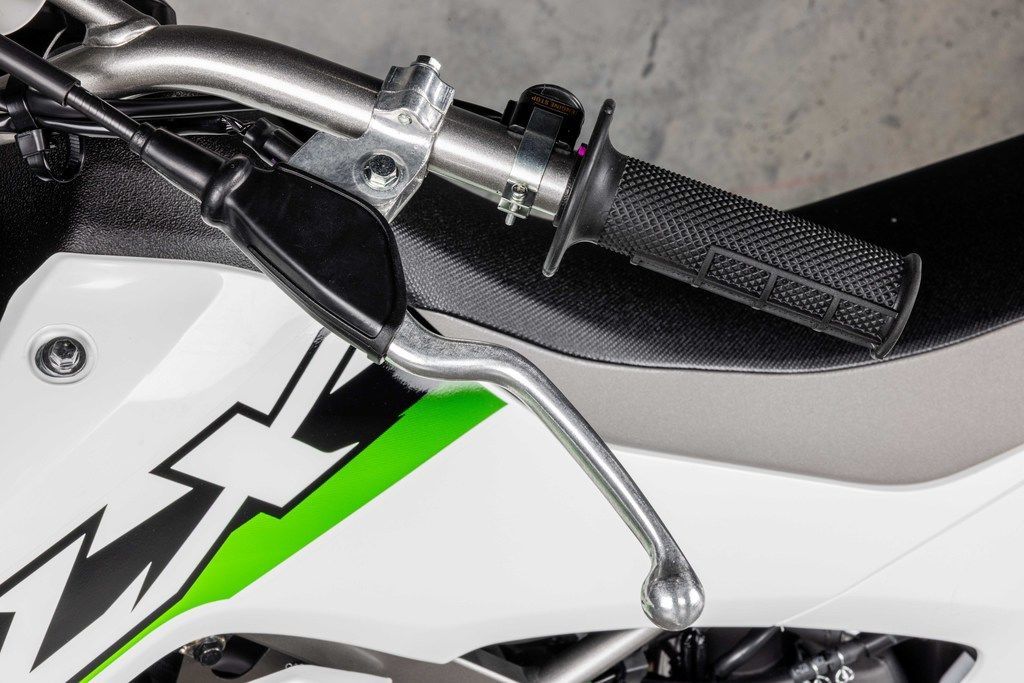 Full-size wheels and powerful disc brakes make the KLX®300R trail bike ready for tough off-road terrain.